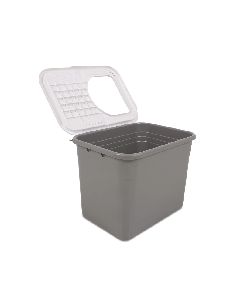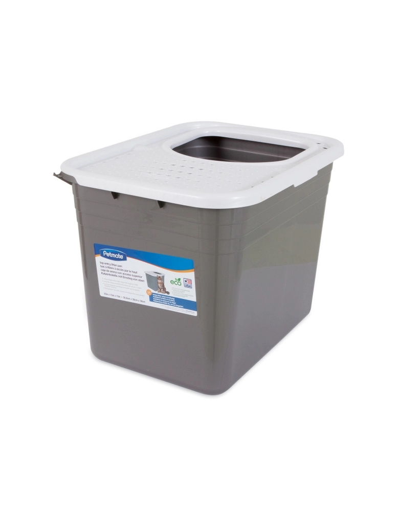 Você vive constantemente com areia de gato espalhadas pela casa porque o gato raspou e espalhou? Você precisa ficar em constante alerta para que seu cão não coma ou fuce nos dejetos dos gatos da sua casa? Se esses cenários são familiares, considere obter uma bandeja sanitária Petmate Top Entry Litter Box. O gato pode raspar a areia a vontade que não haverá vazamentos. A abertura grande permite que gatos de todos os tamanhos entrem tranquilamente na bandeja. Quando saem, a cobertura com rugosidades e furos ajuda a remover areia sanitária das patinhas. Os cães não conseguem chegar perto dos dejetos porque as paredes grandes não permitem. Fabricado nos EUA com materiais 95% reciclados.