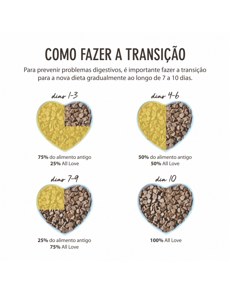 Com os produtos ALL LOVE você tem uma certeza, está oferecendo ao seu melhor amigo, o seu filho de quatro patas, comida de verdade. Equilibrada e com procedência garantida por lei.