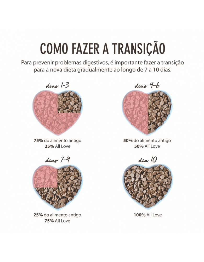 Com os produtos ALL LOVE você tem uma certeza, está oferecendo ao seu melhor amigo, o seu filho de quatro patas, comida de verdade. Equilibrada e com procedência garantida por lei.