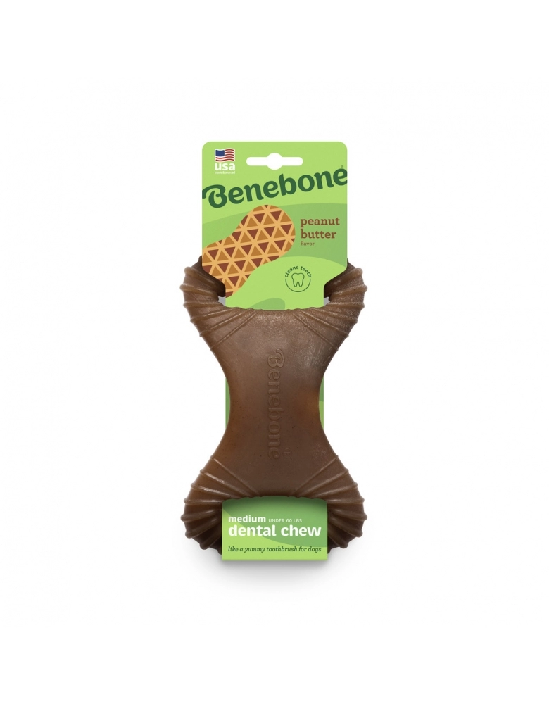 O Benebone Dental Chew é um brinquedo que possui um formato arredondado, ergonômico e com ranhuras para aumentar a esfregação dos dentes e, consequentemente, o auxílio na limpeza. Obviamente não substitui a escovação diária, mas ajuda e muito nessa tarefa de manter nossos melhores amigos sem aquele bafinho de zumbi que tanto incomoda no dia a dia.