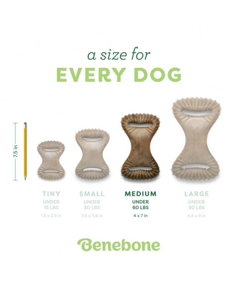 Foi desenvolvido especialmente para cães afim de suprir uma necessidade natural e que não deve ser suprimida. Roer. Todo cão precisa roer. É um instinto primitivo quase impossível de suprimir. E não devemos tentar suprimir, mas sim estimulá-lo nos objetos adequados em vez dos pés de cadeira da casa ou chinelos e sapatos. Benebone foi, portanto, desenvolvido especialmente para os cães passarem momentos maravilhosos e saciantes, roendo em segurança. Estimulando-os física e mentalmente.
