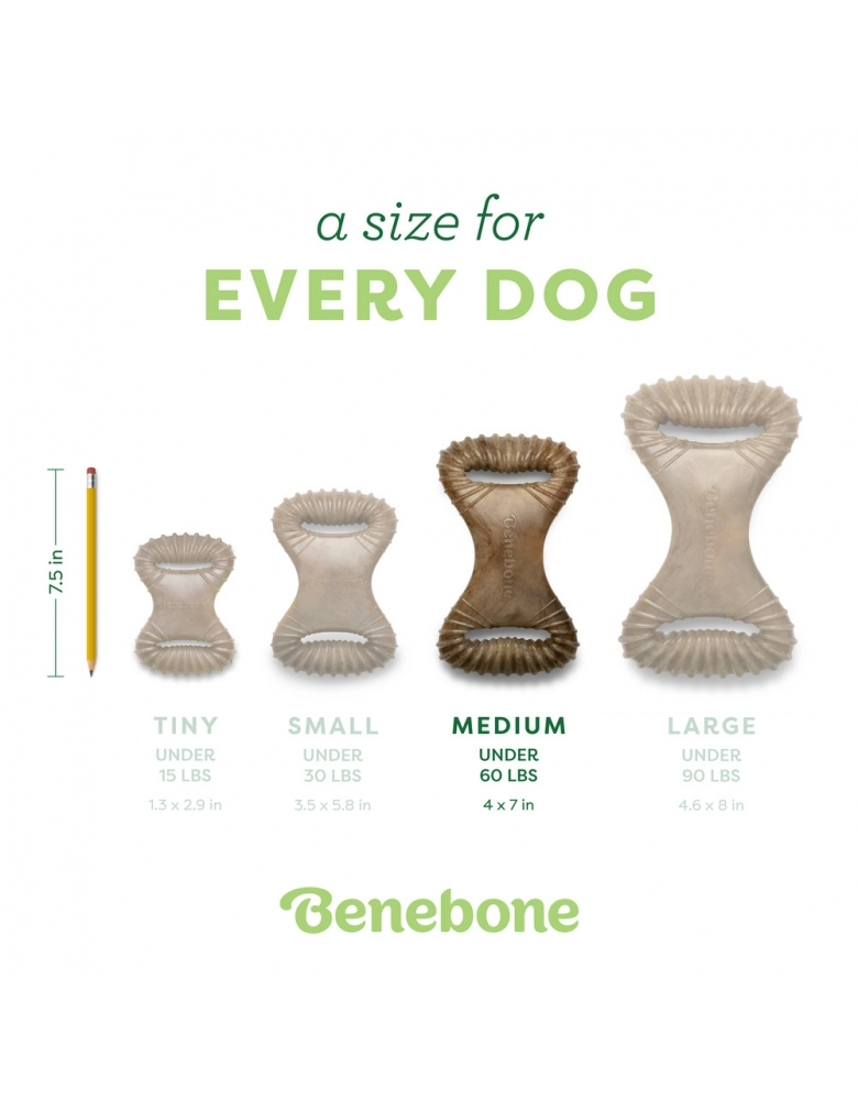 Foi desenvolvido especialmente para cães afim de suprir uma necessidade natural e que não deve ser suprimida. Roer. Todo cão precisa roer. É um instinto primitivo quase impossível de suprimir. E não devemos tentar suprimir, mas sim estimulá-lo nos objetos adequados em vez dos pés de cadeira da casa ou chinelos e sapatos. Benebone foi, portanto, desenvolvido especialmente para os cães passarem momentos maravilhosos e saciantes, roendo em segurança. Estimulando-os física e mentalmente.