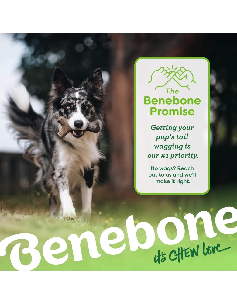 Foi desenvolvido especialmente para cães afim de suprir uma necessidade natural e que não deve ser suprimida. Roer. Todo cão precisa roer. É um instinto primitivo quase impossível de suprimir. E não devemos tentar suprimir, mas sim estimulá-lo nos objetos adequados em vez dos pés de cadeira da casa ou chinelos e sapatos. Benebone foi, portanto, desenvolvido especialmente para os cães passarem momentos maravilhosos e saciantes, roendo em segurança. Estimulando-os física e mentalmente.