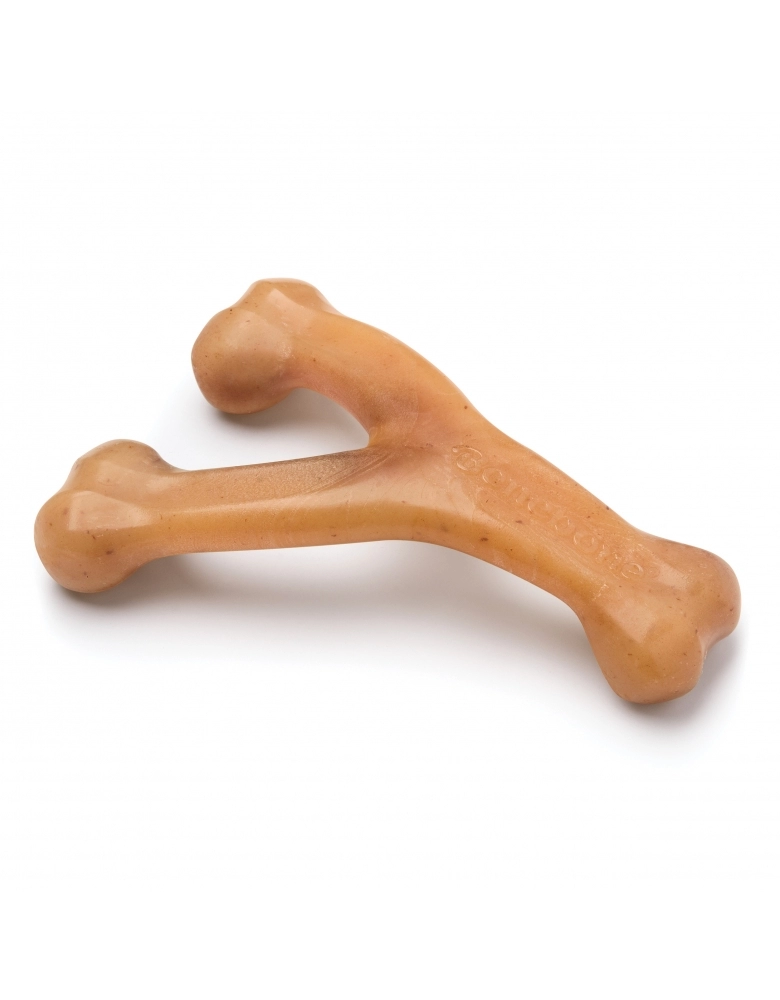 O Benebone Wishbone é um brinquedo que possui um formato de "ossinho da sorte". Possui cantos arredondados, totalmente ergonômico e confortável para os cães. Em qualquer posição que o cão pegar, ele conseguirá roer confortavelmente.