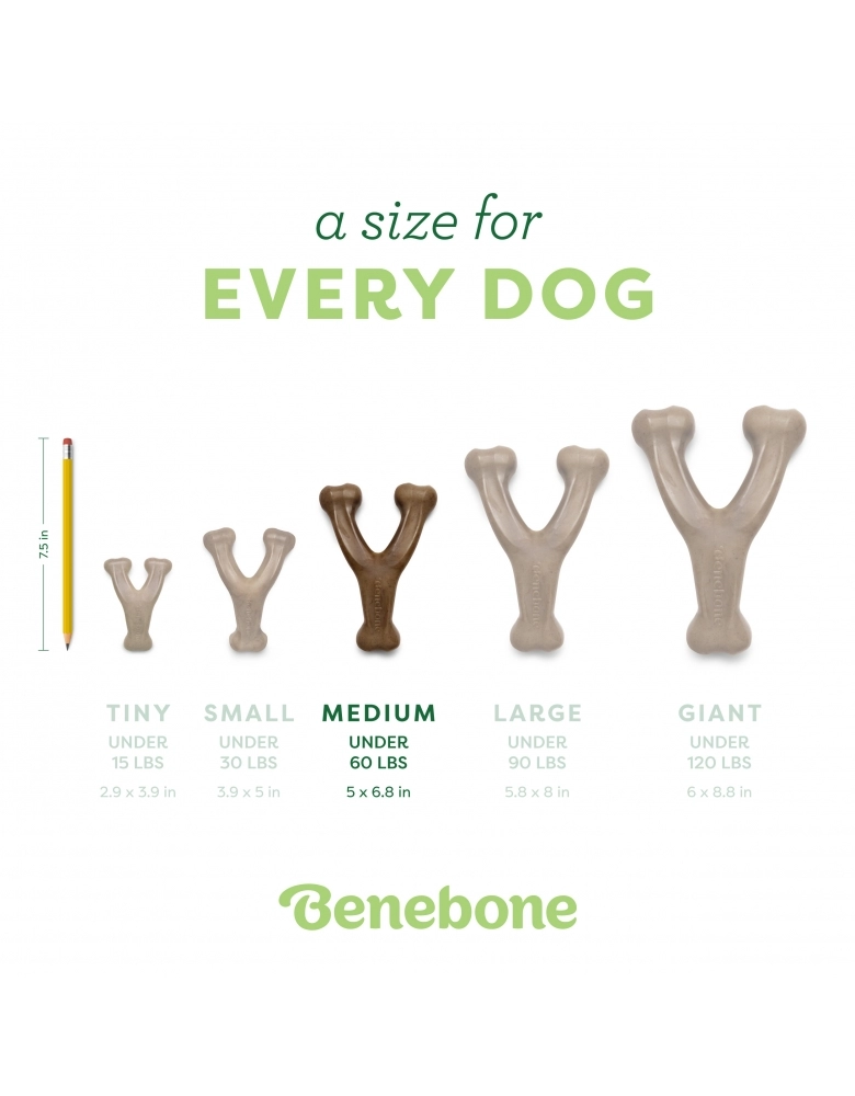 Benebone Wishbone está disponível em 3 tamanhos e 3 sabores.