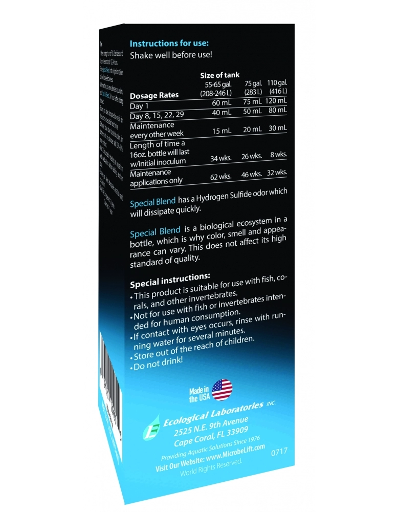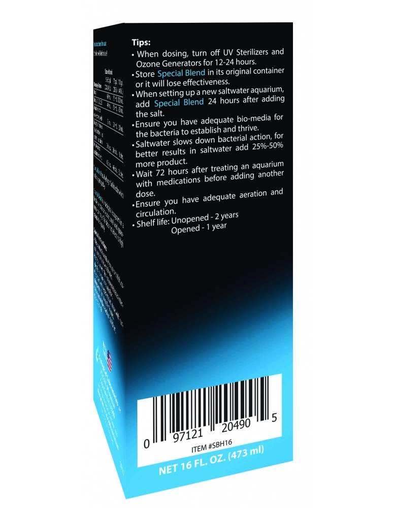 É o único produto no mundo que contém mais de 30 cepas de bactérias vivas diferentes em uma só embalagem. As bactérias deste produto entram no aquário consumindo toda a matéria orgânica disponível, limpando o ambiente, permitindo uma saúde maior dos peixes e do aquário como um todo. Possui bactérias fotossintetizantes que auxiliam plantas e corais marinhos. Também melhora o trato digestivo dos peixes, facilitando e melhorando a digestão e consequentemente a absorção de alimentos.
