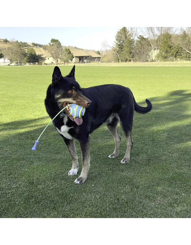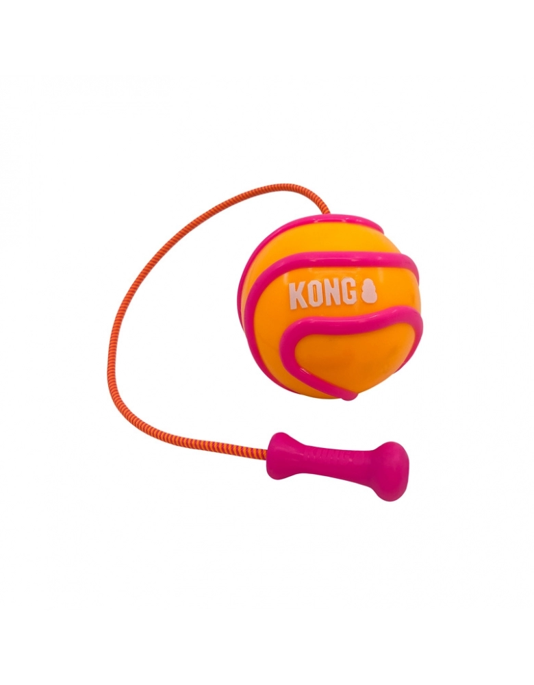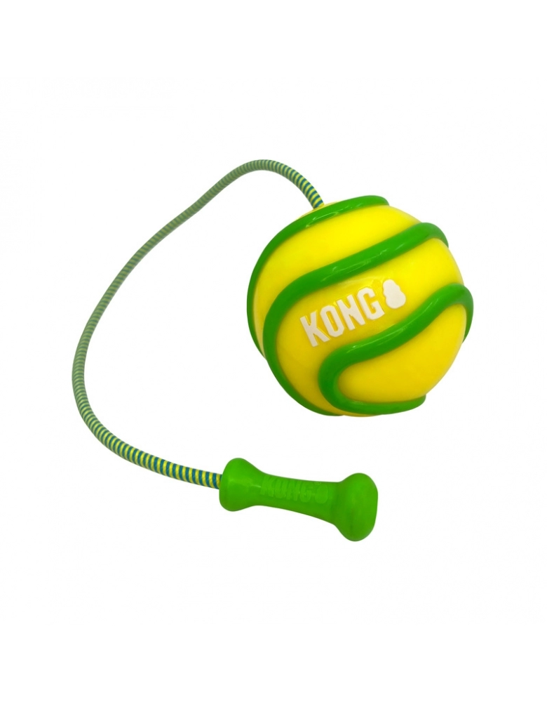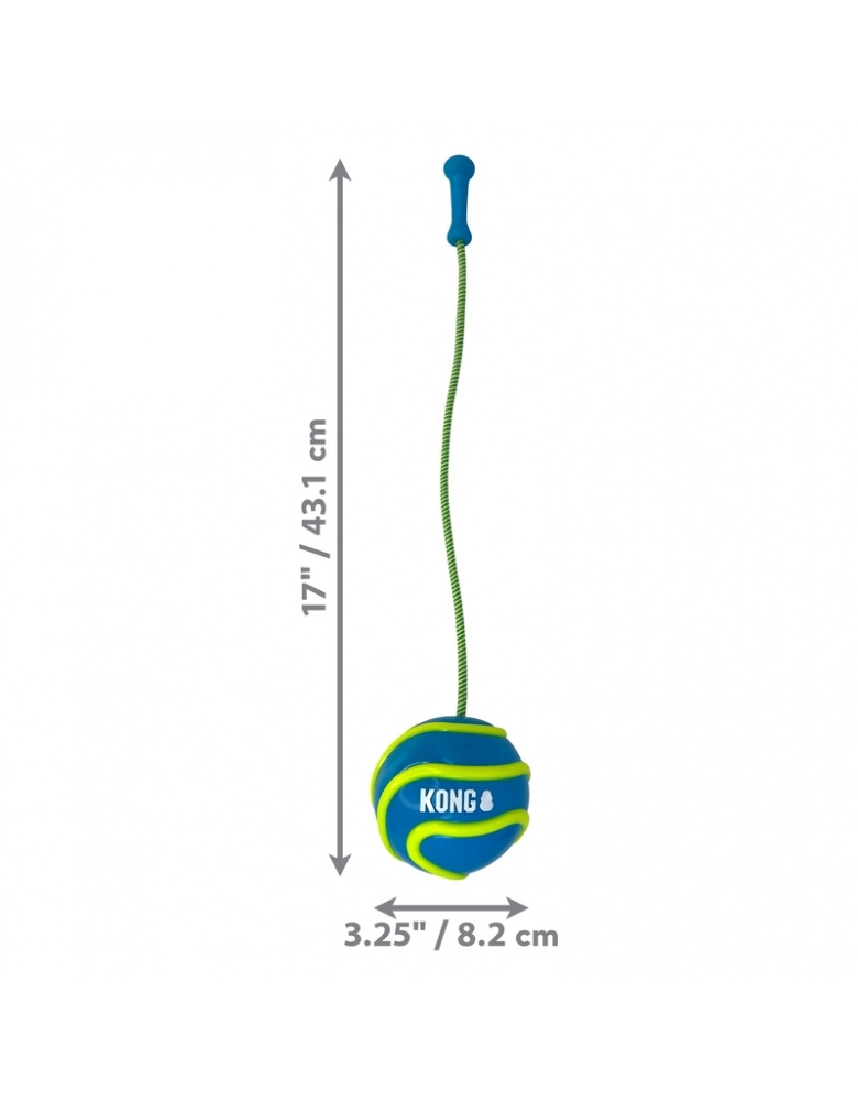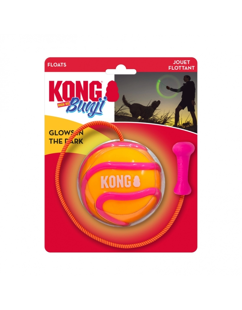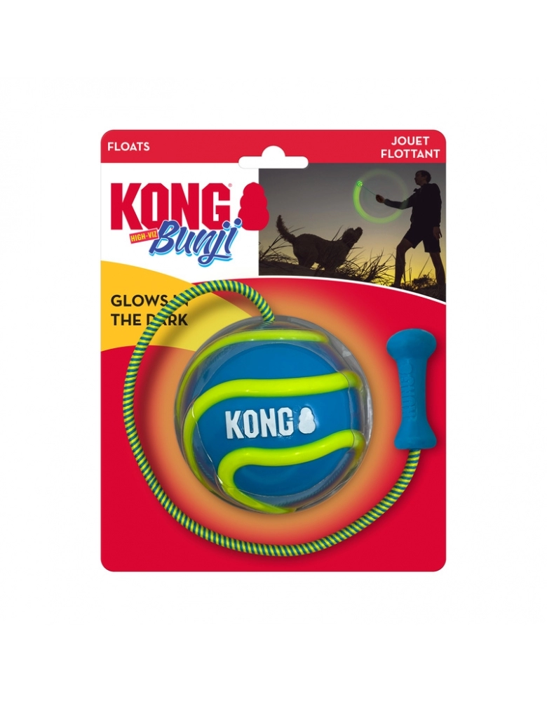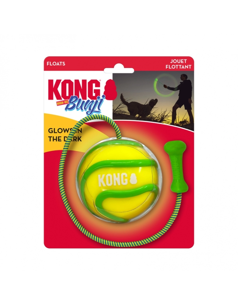 KONG Bunji High-Viz Ball é um brinquedo desenvolvido para brincadeiras de jogar e buscar diurnas ou noturnas, pois brilha no escuro! A corda torna os arremessos mais longos e fáceis. Flutua na água. Indicado para cães de mordidas leves a moderadas. Para cães de mordidas destrutivas e poderosas, prefira sempre brinquedos KONG da linha de borracha. Modo de usar: Segure pela corda, gire e arremesse. Para brincar à noite, deixe sob a luz por alguns minutos.