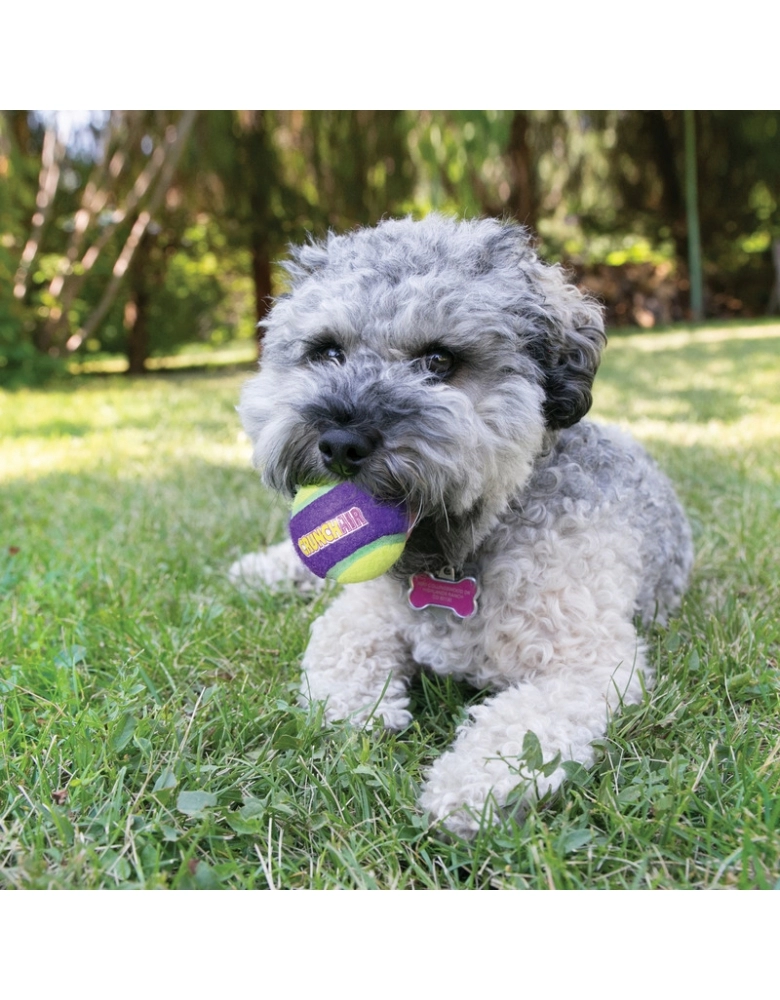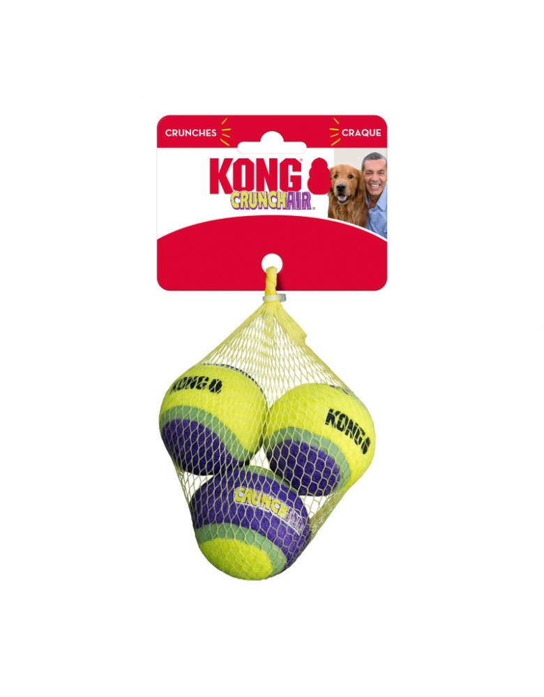 KONG Crunch Air é uma bolinha desenvolvida para cães de mordida leve e não destruidores. Não possui apito, mas sim um “craque” que estimula os instintos naturais. Feita com feltro não abrasivo para proteger os dentes.