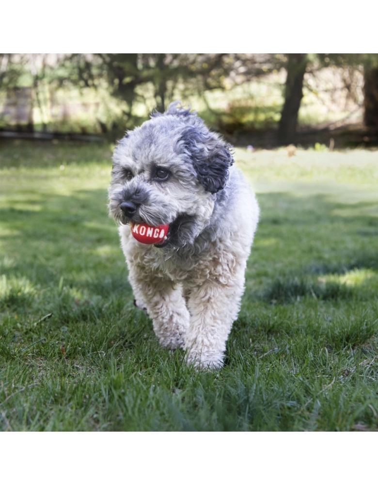 KONG Signature Ball é uma bolinha mais dura que a maioria das bolinhas da KONG e apita. Trata-se de uma bolinha linda que leva a assinatura da KONG. Resistente, porém não indestrutível, é perfeita para cães de mordida moderada. Quica e rola muito bem e pode ser usada dentro e fora de casa, no seco ou no molhado. Flutua se jogada na água.