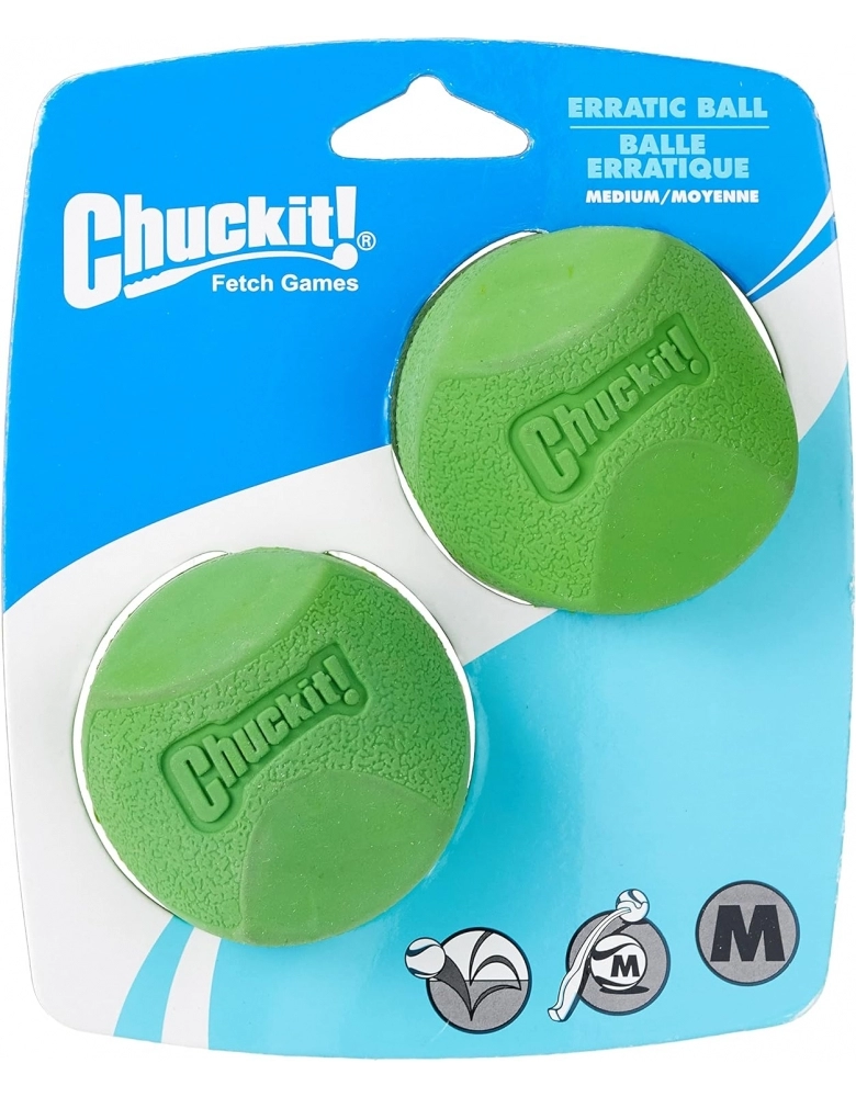 Chuckit! Erratic Ball são feitas de borracha e apresentam um quique errático imprevisível, o que estimula ainda mais o cão e aguça seus instintos primitivos de caça. Muito resistente e durável se usada da maneira adequada. É compatível com os arremessadores da Chuckit!