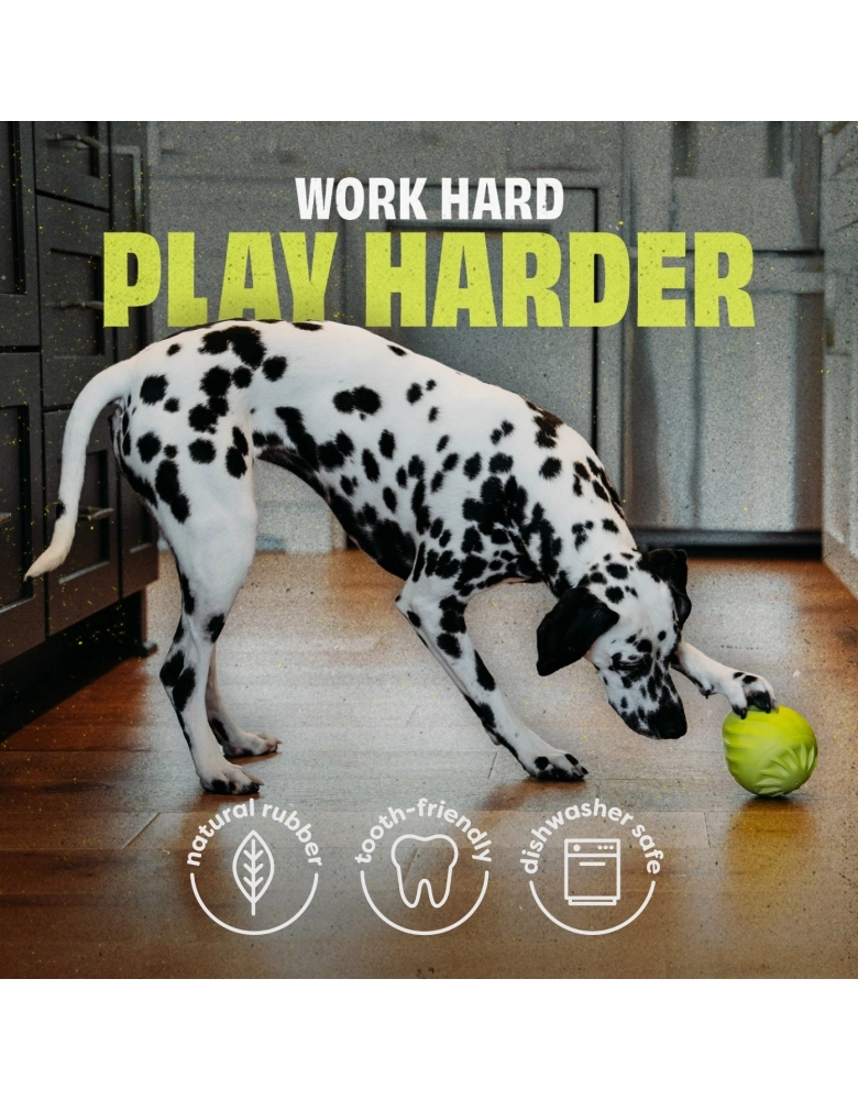 Cuidados: Embora seja feito de matéria ultra durável, que é a borracha natural, não é indestrutível. Se o cão conseguir arrancar pedaços grandes, o ideal é descontinuar ou usar somente interativamente e não deixar sozinho com ele. A garantia não cobre destruição. Se não quiser que o cão destrua, e perceber que, ao morder, o cão consegue destruí-lo, brinque somente interativamente ou use apenas para alimentar o cão. Acabado o alimento, retire do contato com o cão e higienize.