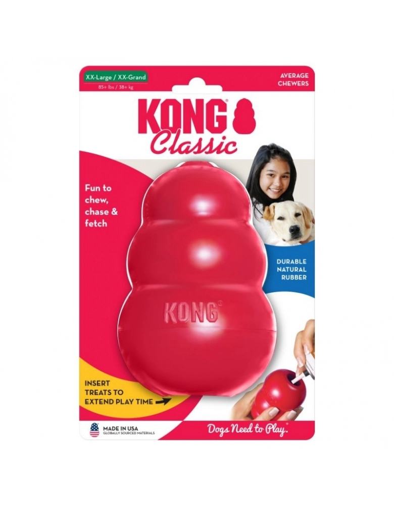 É um Brinquedo interativo que pode ser usado para brincadeiras de jogar e trazer mas principalmente para ser recheado para satisfazer necessidades primitivas dos cães que é trabalhar pelo alimento, morder e lamber. Se usado corretamente pode durar a vida toda do cão. Pode ser congelado para desafios ainda mais interessantes e duradouros. Um cão que passa 30, 40 minutos para tirar um recheio congelado do KONG se cansa a ponto de não ter mais energia para roer e destruir coisas em sua casa. Além de ser exercício físico e mental, preenche o tempo de um cão entediado.