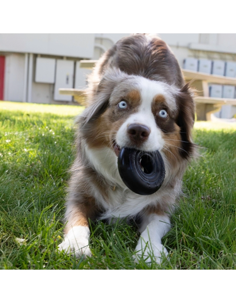 KONG Extreme Donut é um brinquedo carga pesada, ultra resistente, feito para aguentar mordidas de cães com mordidas de força extrema por longos períodos. Morder alivia o estresse, é uma atividade enriquecedora e ajuda na saúde oral do cão. Excelente brinquedo para brincar de jogar e trazer.