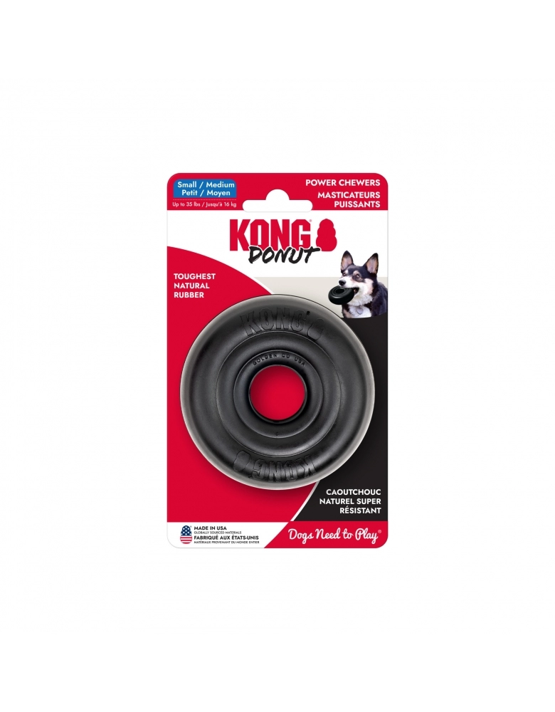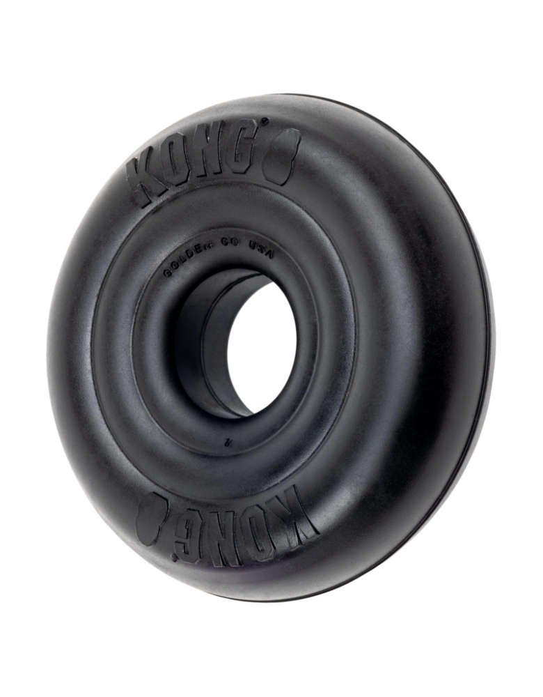 KONG Extreme Donut é um brinquedo carga pesada, ultra resistente, feito para aguentar mordidas de cães com mordidas de força extrema por longos períodos. Morder alivia o estresse, é uma atividade enriquecedora e ajuda na saúde oral do cão. Excelente brinquedo para brincar de jogar e trazer.