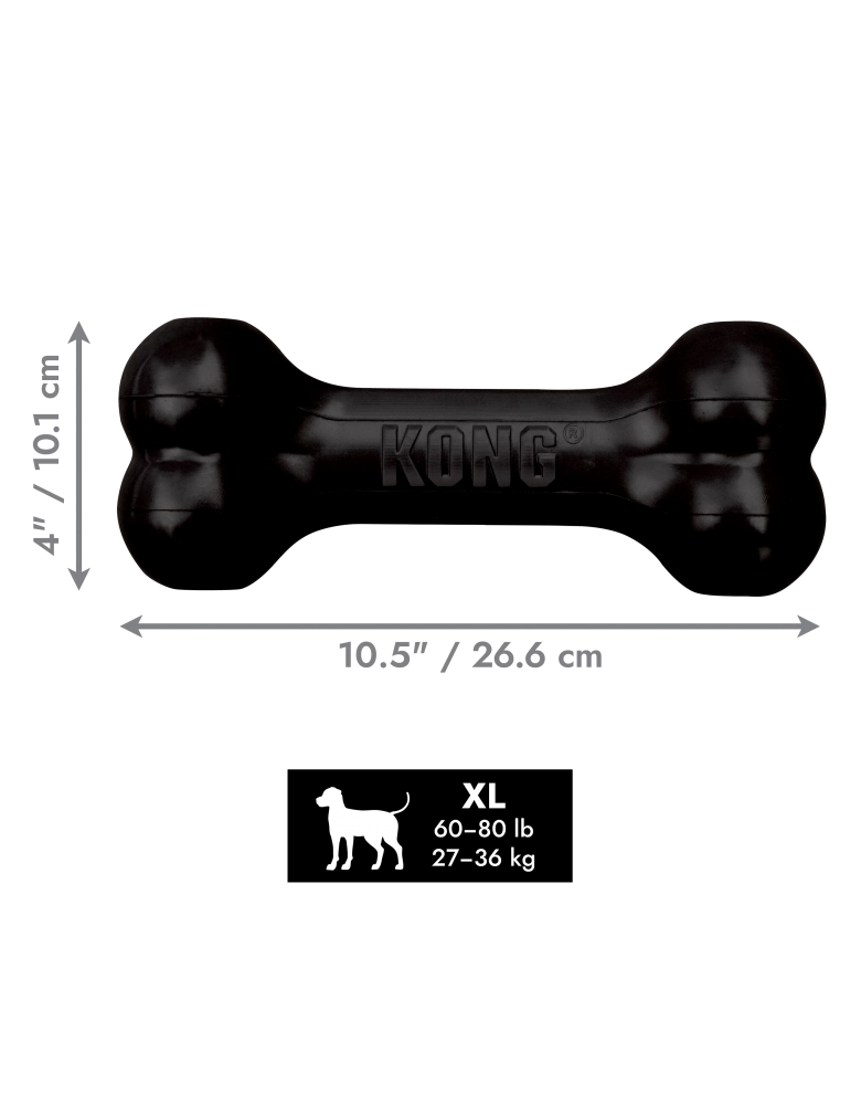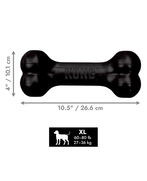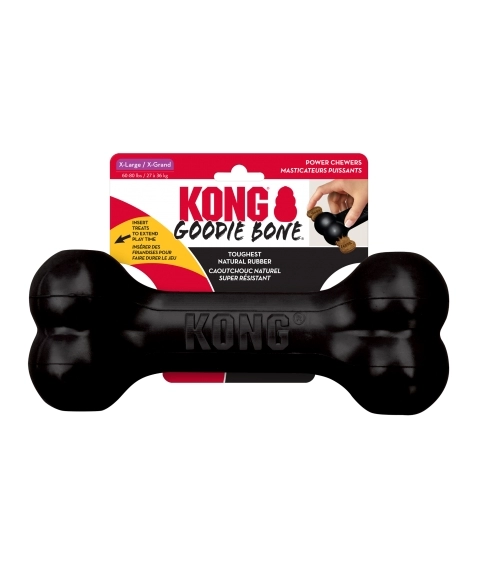 KONG Extreme Goodie Bone XL é feito da mais pura borracha Extreme da KONG e é desenhado para satisfazer os instintos naturais de mastigar de cães grandes e poderosos. Feito para uma variada estimulação mental. Ideal para ser recheado com petiscos, pastas ou receitas caseiras saudáveis. Use apenas com supervisão. Descontinue se for danificado. Indicado para cães com mordida forte. Importante: Pode ser perigoso se dimensionado de forma incorreta. Certifique-se de que o tamanho da boca de seu cachorro não permita que ele engula o brinquedo inteiro. Descontinue o uso caso esteja danificado. Supervisione o tempo todo. Se ele conseguir arrancar pedaços, descontinue o uso. Nenhum brinquedo é indestrutível, por isso, fique sempre por perto.