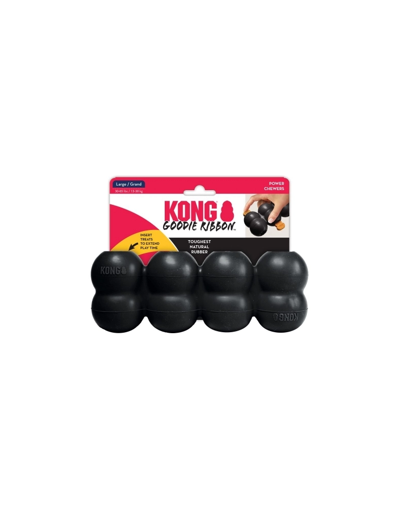 KONG Extreme Goodie Ribbon é feito da mais pura borracha Extreme da KONG e é desenhado para satisfazer os instintos naturais de mastigar. É feito para uma variada estimulação mental. Ideal para ser recheado com petiscos, pastas ou receitas caseiras saudáveis. Use apenas com supervisão. Descontinue se for danificado. Indicado para cães com mordida forte. Caso seu cão seja bastante destruidor, recomendamos usar sempre o maior tamanho.