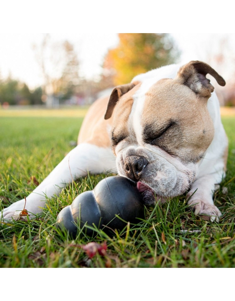 É um Brinquedo interativo que pode ser usado para brincadeiras de jogar e trazer mas principalmente para ser recheado para satisfazer necessidades primitivas dos cães que é trabalhar pelo alimento, morder e lamber. Se usado corretamente pode durar a vida toda do cão. Pode ser congelado para desafios ainda mais interessantes e duradouros. Um cão que passa 30, 40 minutos para tirar um recheio congelado do KONG se cansa a ponto de não ter mais energia para roer e destruir coisas em sua casa. Além de ser exercício físico e mental, preenche o tempo de um cão entediado.