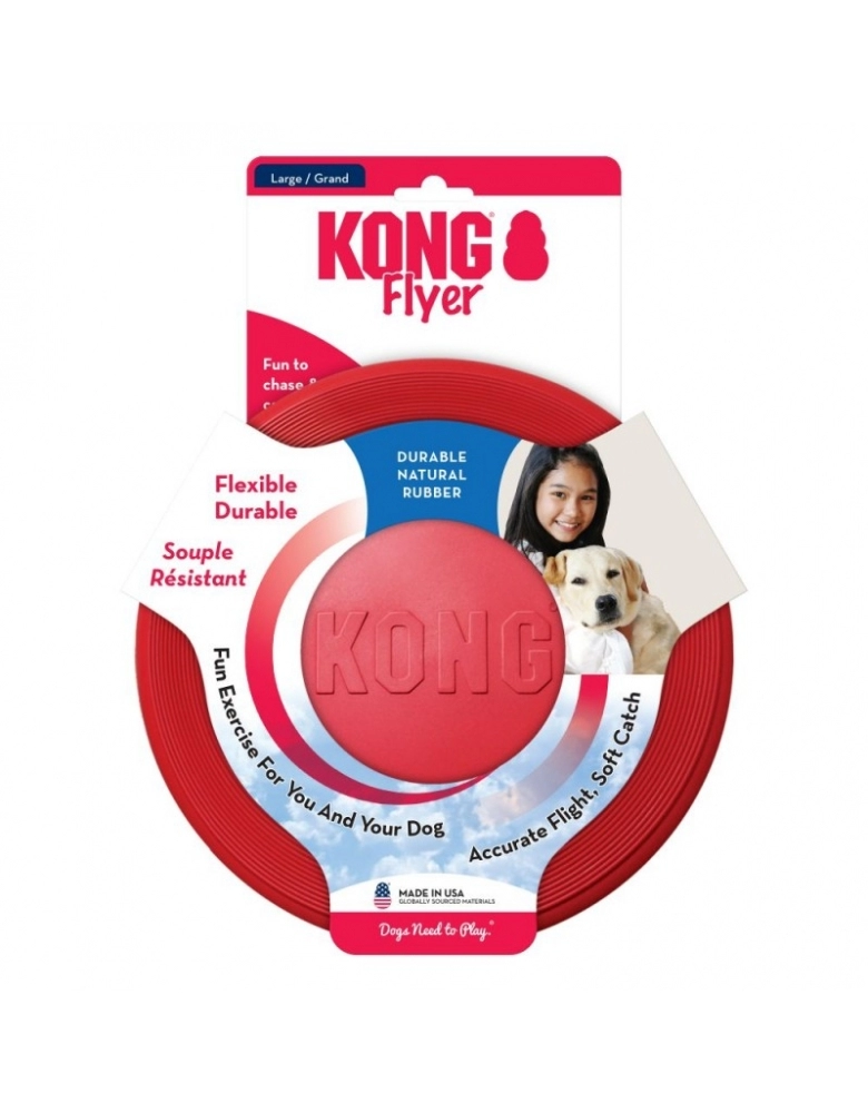 KONG Flyer é um brinquedo feito com os materiais mais seguros e resistentes do mercado. A mesma borracha natural do KONG Classic. É ultra-flexível, super durável, voa com precisão e proporciona pegada macia para não machucar a boca de seu cão. É o material ideal para que você possa brincar por muito tempo sem riscos de ferimentos ou dentes quebrados.