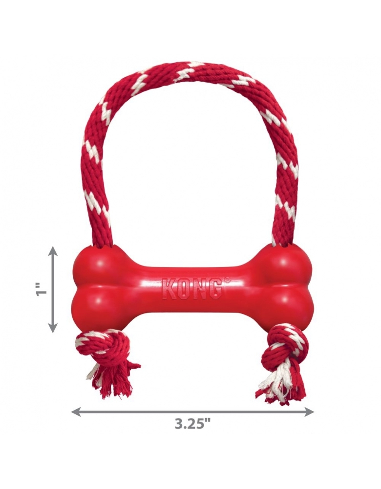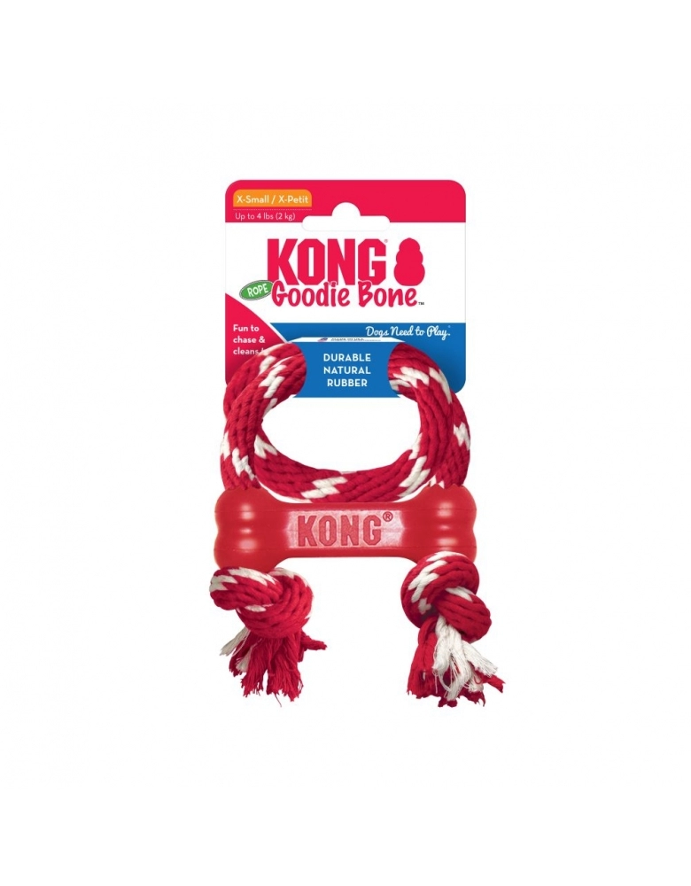 O osso KONG Goodie ?? with Rope toy envolve os cães que se deleitam nas sessões de mastigação, enquanto a corda de algodão totalmente natural torna-o um brinquedo ideal para atender às necessidades instintivas de um cão. Feito com a fórmula exclusiva de borracha vermelha natural KONG Classic, este osso também tem o prazer adicional de uma corda toda de algodão que dá aos cães várias opções de mastigação.