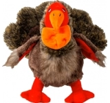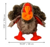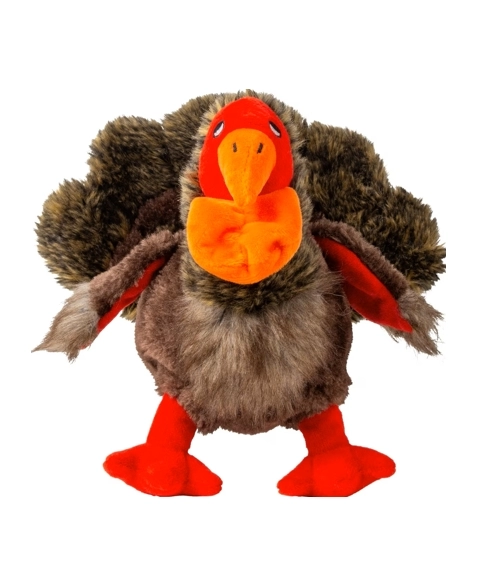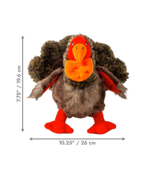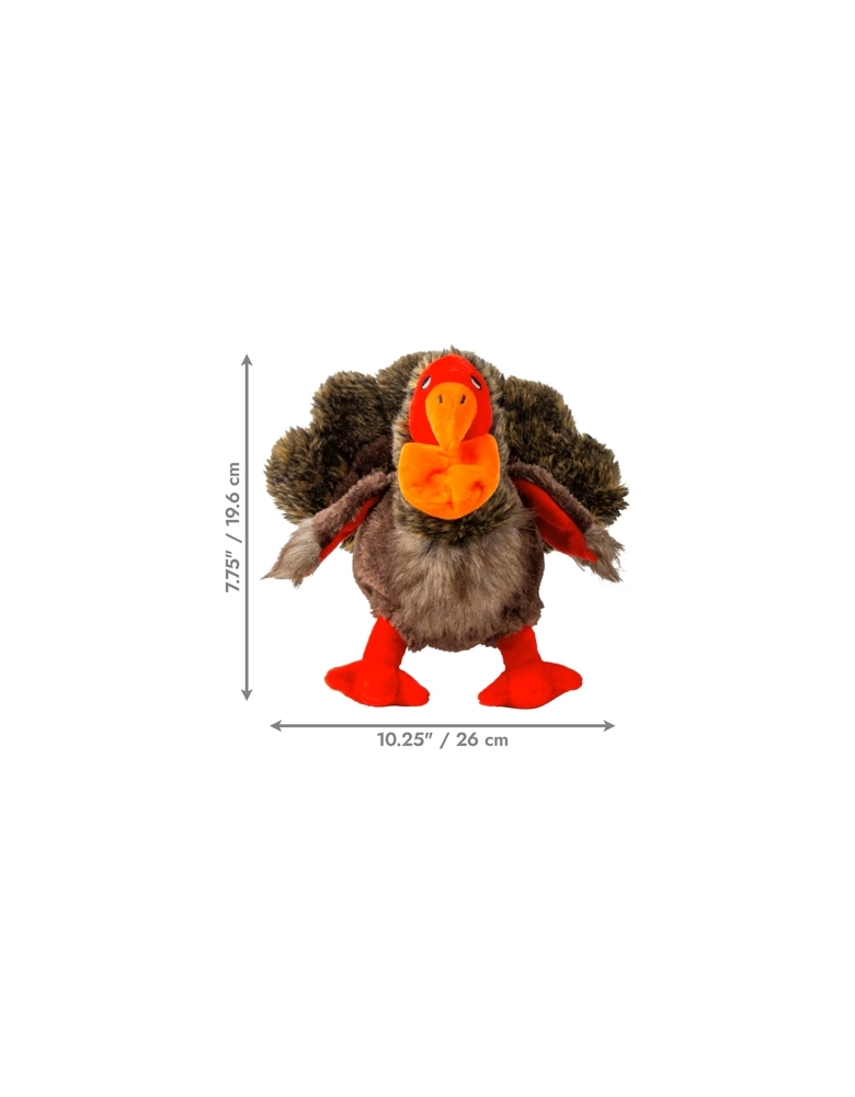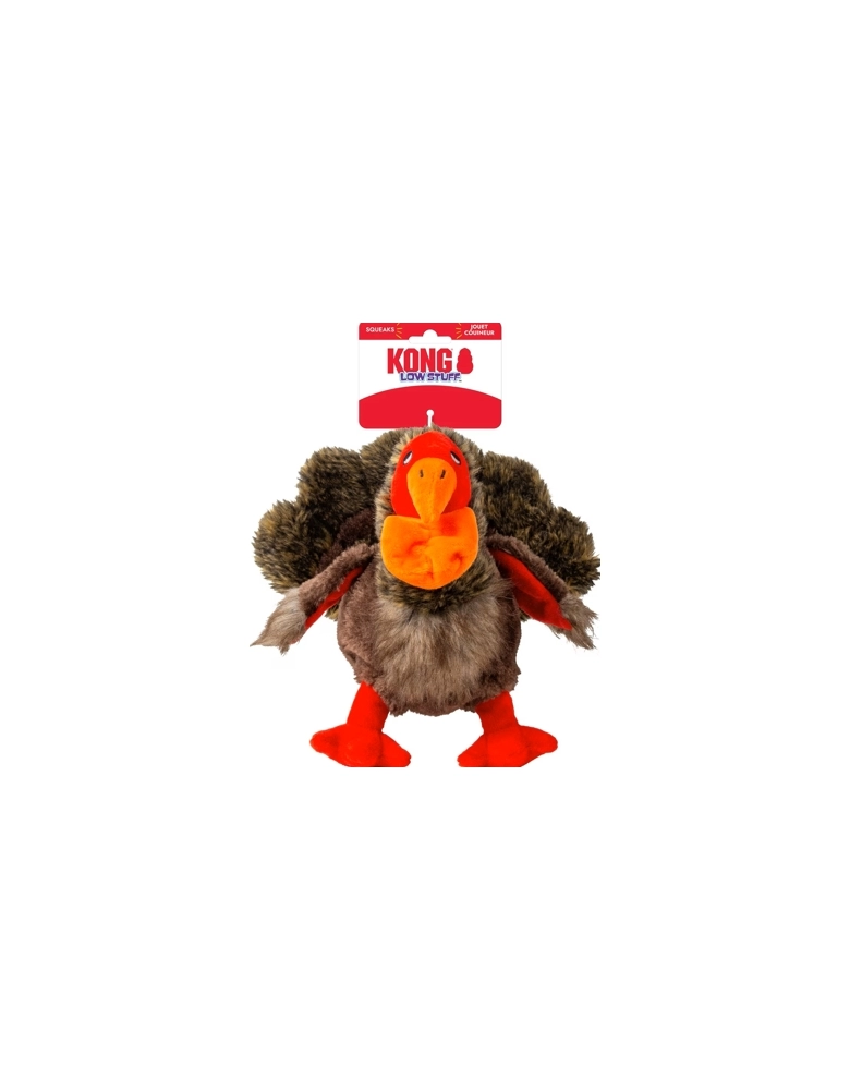 O brinquedo KONG Holiday Low Stuff Turkey é possui material de pelúcia irresistivelmente macio para os aconchegos essenciais em todas as expedições de brincadeiras. Essas companheiras de aventura com camada dupla, são ideais para a ação em ambientes fechados - desde os cumes do sofá até as caminhadas no porão. Um apito grave e grande atrai e prolonga a diversão. Possui pouco enchimento para o caso de o cão conseguir rasga-lo, não encher e sujar sua casa com enchimento. Importante: Não é um objeto de roer. Não deve ser deixado sozinho com o cão até ter certeza de que o cão não irá destruí-lo, nem por alguns minutos. Para cães com mordida forte e destrutivas, prefira os brinquedos de borracha natural. Se o cão pegar para roer e não estiver brincando da maneira adequada, remova e comece novamente até que ele aprenda. Acabada a brincadeira, guarde para a próxima.
