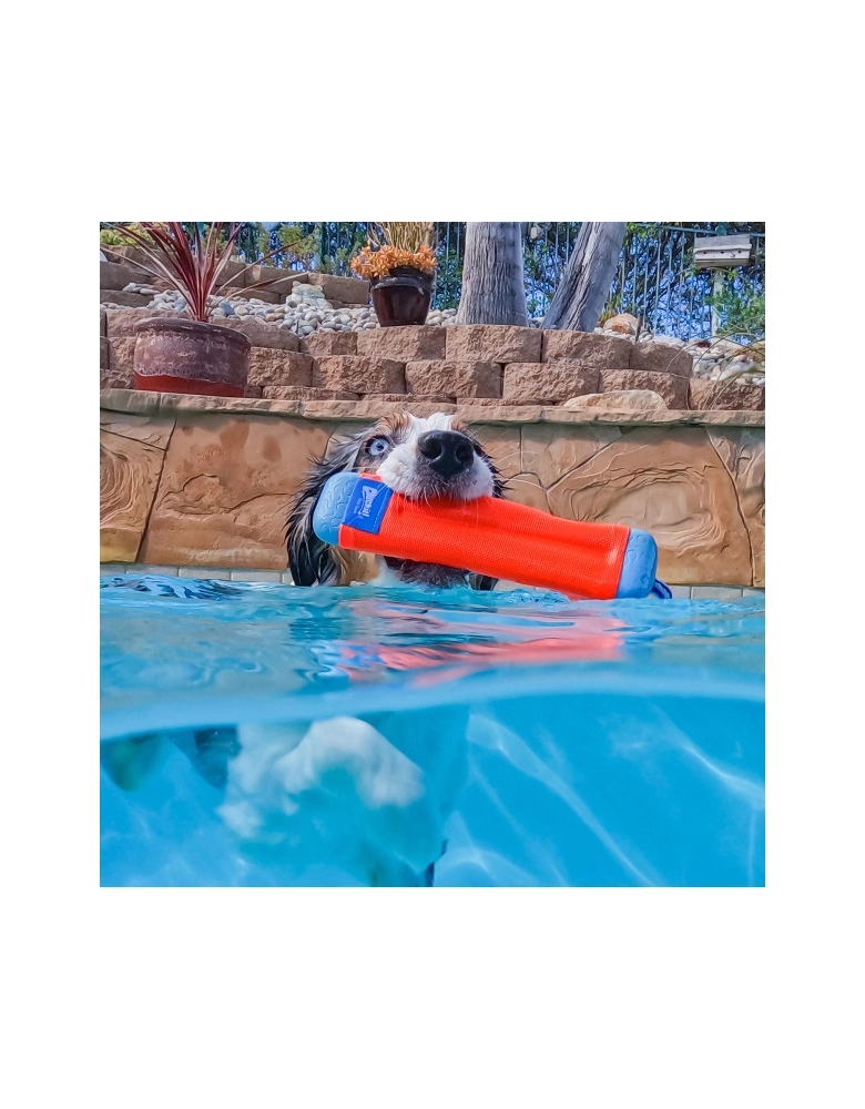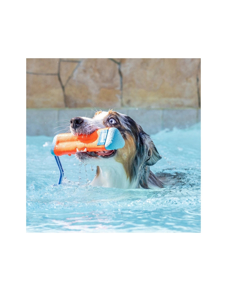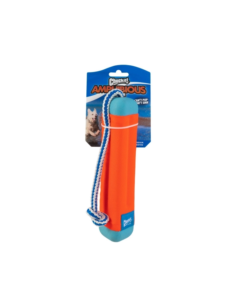 Chuckit! Amphibious Bumper é feito com uma corda de nylon resistente, espuma e borracha. Desenvolvido para flutuar, resistir às mordidas do seu cão e ter uma flexibilidade que garanta o conforto. Possui cores vibrantes para ampliar a visibilidade. Perfeito para brincadeiras na água ou grama.