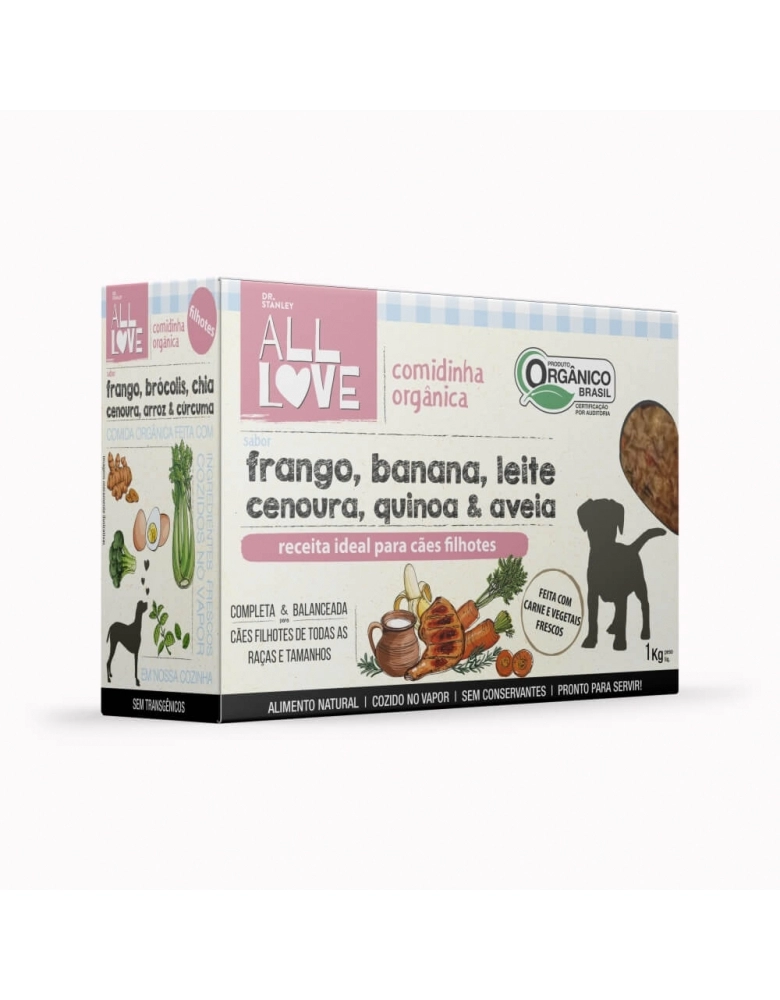 Uma boa alimentação nos primeiros meses de vida do seu cão é fundamental para garantir um crescimento harmonioso e um bom suporte para o sistema imunológico em desenvolvimento. Esta receita sabor Frango, Banana, Leite, Cenoura, Quinoa & Aveia é perfeita para os cães em fase de crescimento. Nossa comidinha orgânica é completa e foi cientificamente balanceada para fornecer todos os nutrientes que o seu filhote precisa para crescer com saúde. É ideal para cães filhotes de todas as raças e tamanhos. Nossa comidinha orgânica não contém corantes ou conservantes. É um alimento natural cozido no vapor como você faria em casa e já está pronta para servir, não precisa congelar e nem aquecer. Oferecer nossos alimentos orgânicos para seu pet é garantia de uma alimentação natural, orgânica, sem agrotóxicos ou transgênicos, ou seja, saudável de verdade.