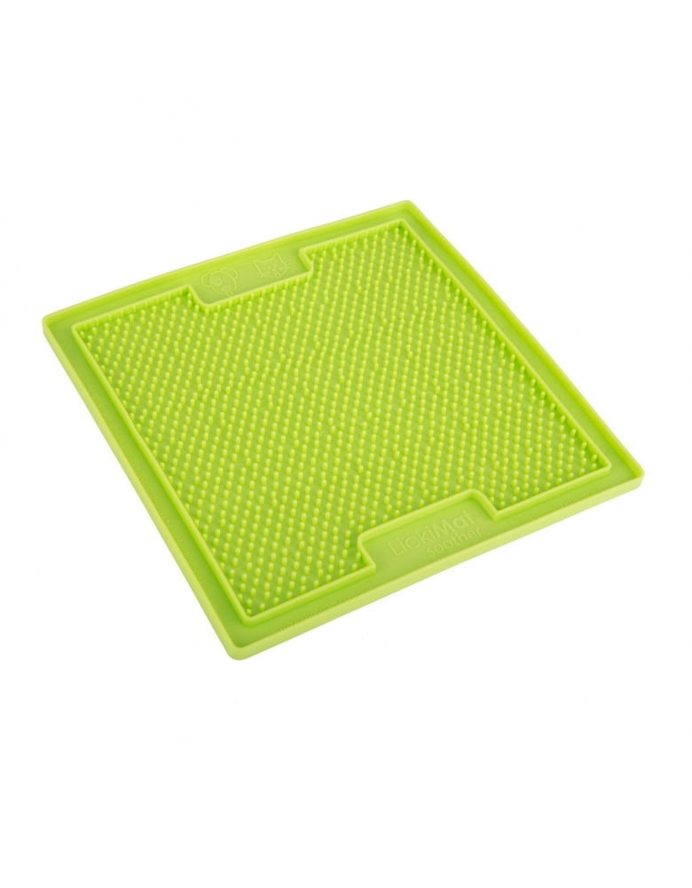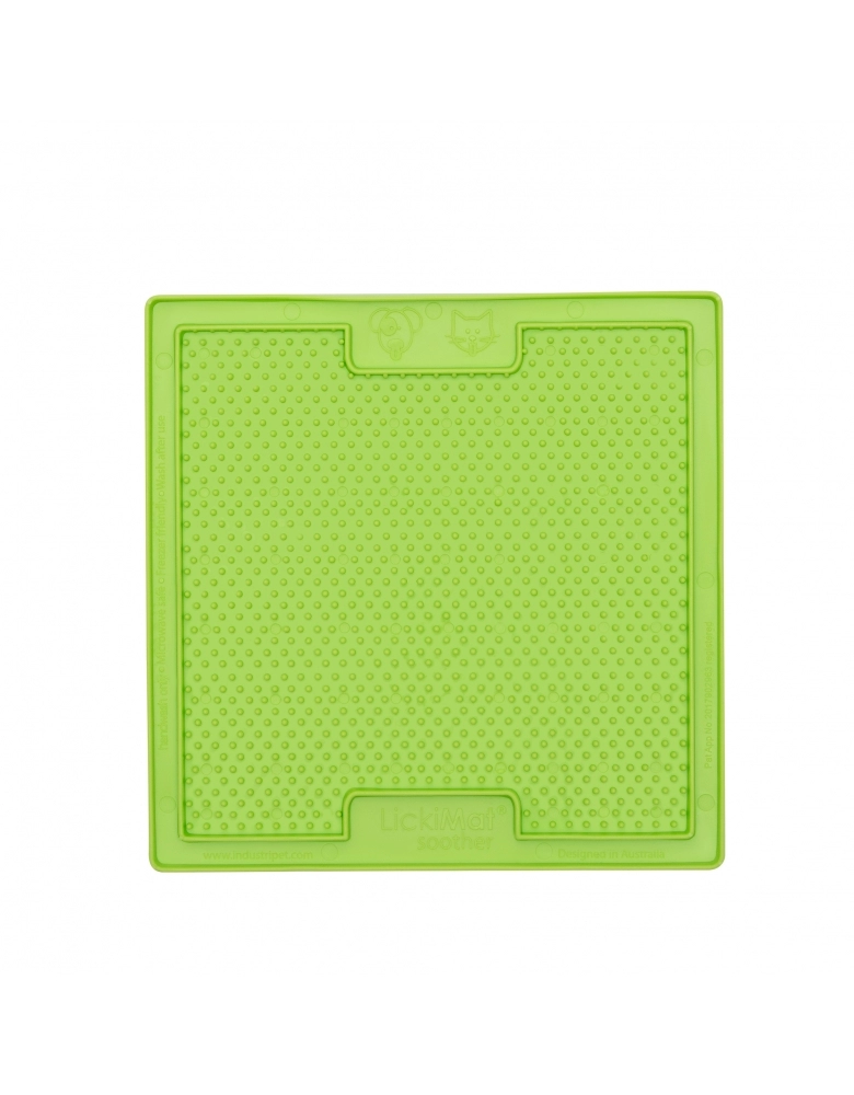 LickiMat Soother é um alimentador desenvolvido por veterinários que tem o objetivo de divertir, reduzir o estresse, ansiedade e tédio de seu cão. Reduz a velocidade de ingestão de alguns segundos para alguns minutos. Feito 100% de borracha com grau de uso humano. Possui cerdas suaves para reduzir o tempo de ingestão do alimento.