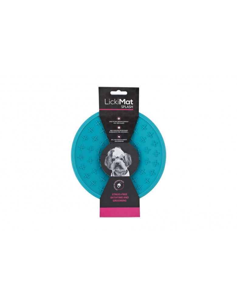 LickiMat Splash é um alimentador desenvolvido por veterinários que tem o objetivo de ser grudado em um local de sua conveniência, por exemplo, durante o banho, tosa ou qualquer situação para distrair o cão de algo potencialmente estressante. Feito para divertir, reduzir o estresse, ansiedade e tédio de seu cão. Reduz a velocidade de