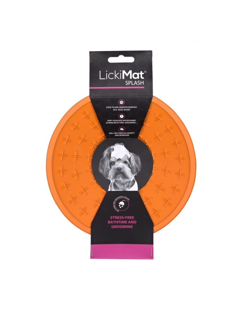 LickiMat Splash é um alimentador desenvolvido por veterinários que tem o objetivo de ser grudado em um local de sua conveniência, por exemplo, durante o banho, tosa ou qualquer situação para distrair o cão de algo potencialmente estressante. Feito para divertir, reduzir o estresse, ansiedade e tédio de seu cão. Reduz a velocidade de