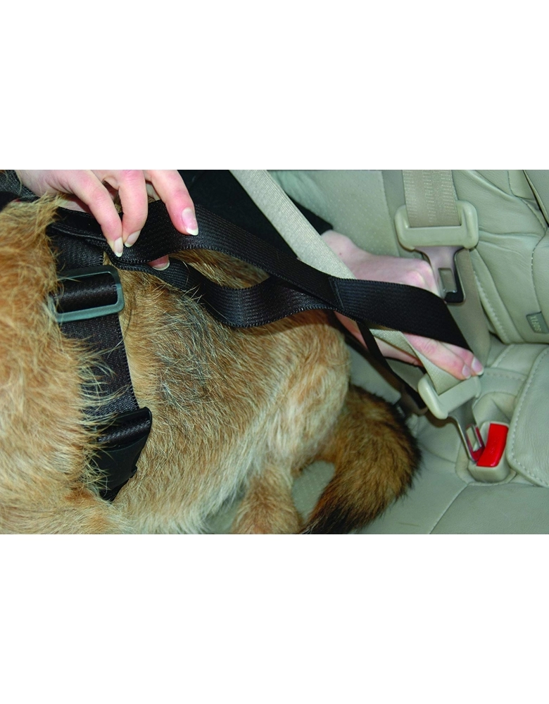 Modo de usar: Coloque passando a cabeça de seu cão e faça os ajustes necessários. Conecte as partes laterais. Conecte diretamente no encaixe do cinto de segurança ou passe o cinto de segurança de seu carro por dentro da cinta anterior ao conector metálico. Pode ser usado para passear ou deixado no cão para facilitar.