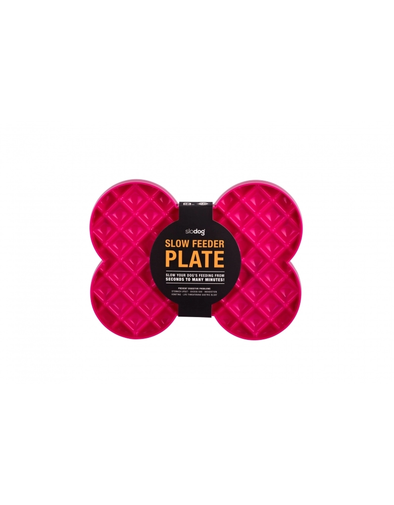 LickiMat Slodog foi desenvolvido para obrigar seu cão a comer lentamente, sem frustrá-lo. Comer devagar previne problemas digestivos como mal estar estomacal, excesso de gases, indigestão, vômitos e torção gástrica, que pode ser fatal. O cão consegue acessar a comida facilmente, mas precisa movimentar-se por todo o prato, comendo os grânulos de alimento um a um., sem labirintos e barreiras frustrantes pelo caminho. Essas barreiras muito difíceis podem gerar frustração e fazer com que o cão segure o comedouro e tente virá-lo.