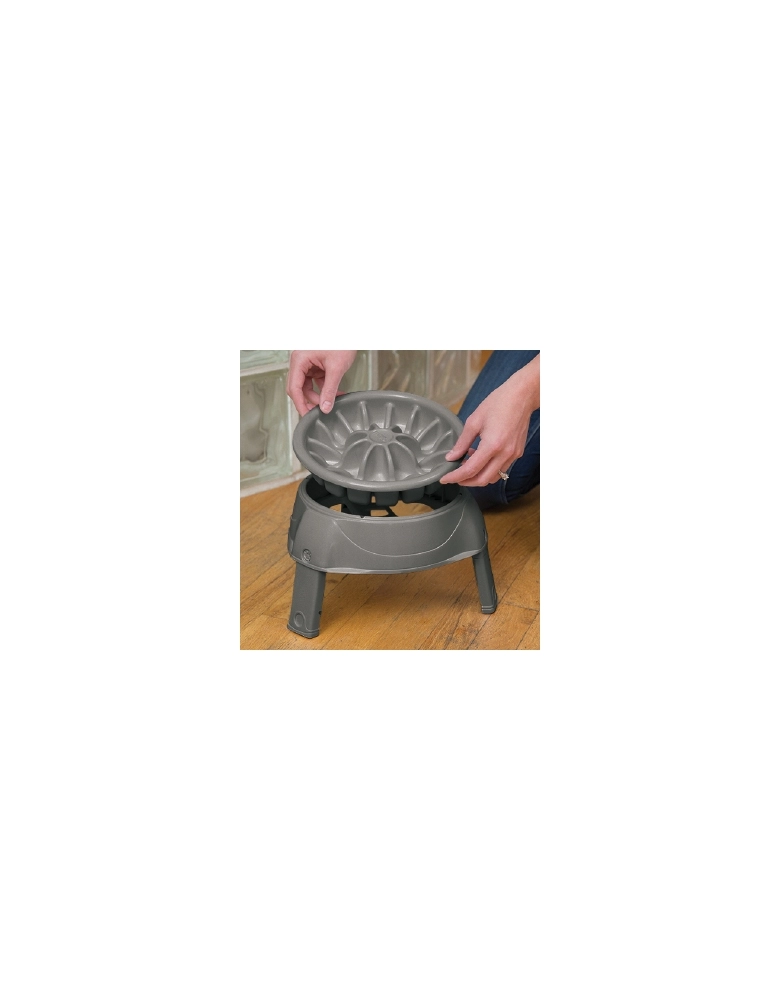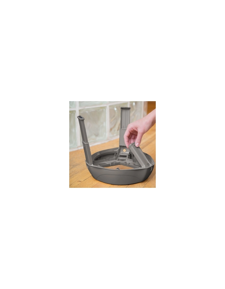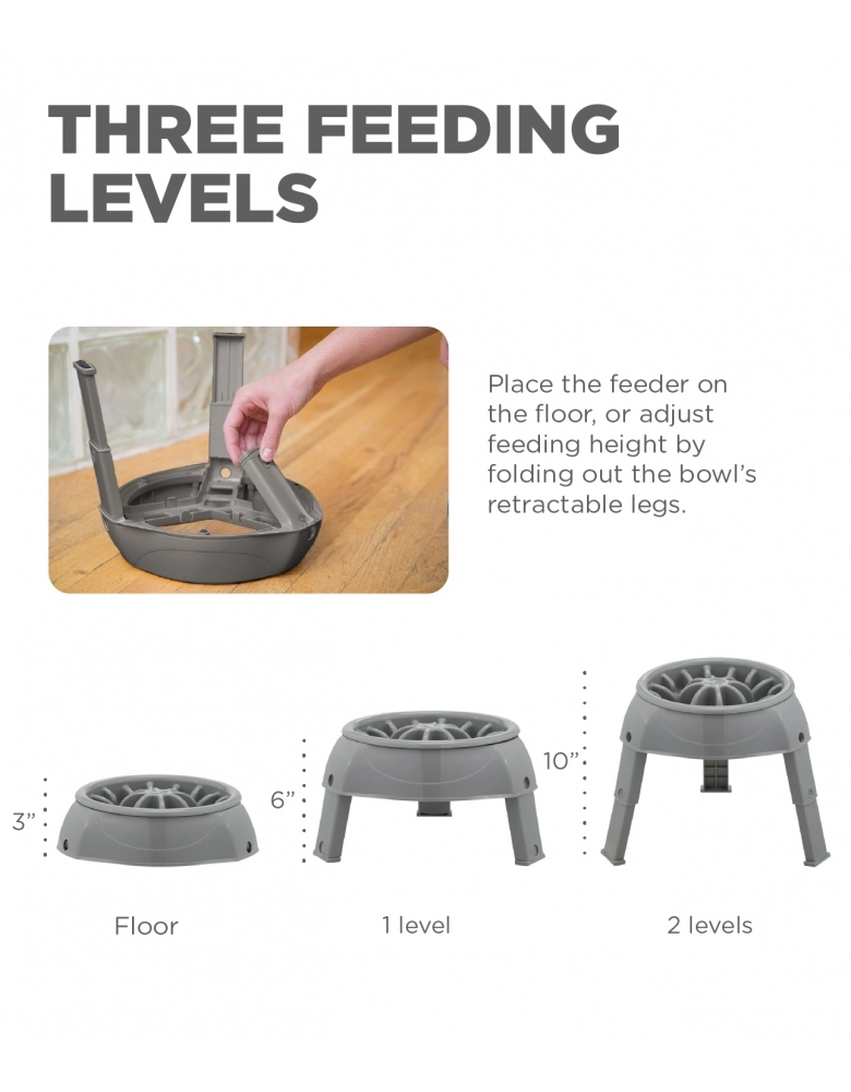 Instruções: 1 – Puxe as pernas para fora para elevar o alimentador para um tamanho médio (15cm). 2 Para aumentar a altura do alimentador para 25cm aperte o desenho de pata na parte externa da base enquanto puxa a perna para extensão máxima. 3 – Assim que ajustar o alimentador para a altura perfeita, coloque o prato no topo da base. 4 - Para retrair, aperte o desenho de pata e ao mesmo tempo empurre a perna para baixo até que esteja totalmente retraída. Dobre as pernas para a base.