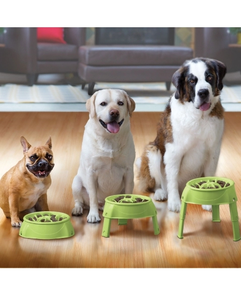 Comedouro lento, saudável com ajuste de altura. Faz com que seu cão coma até 10 vezes mais lentamente. Recomendado por veterinários pois faz com que o cão coma mais lentamente evitando problemas digestivos e melhorando de forma geral, a digestão dos alimentos. Possui uma base antiderrapante. Fabricado com materiais destinados à alimentação. Capacidade de até 4 xícaras (alimento seco ou úmido).