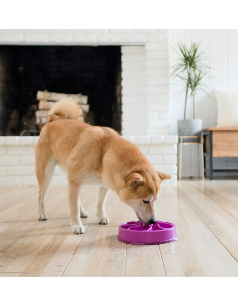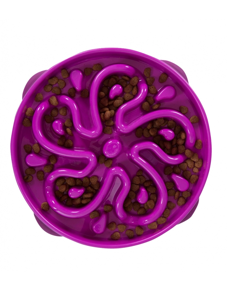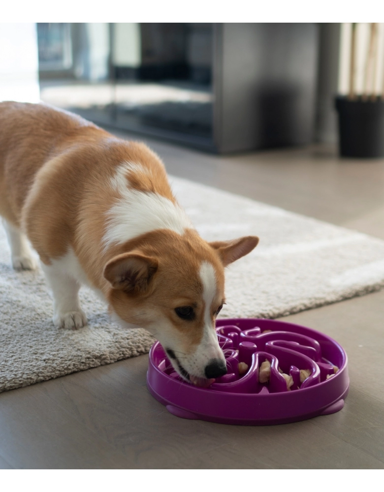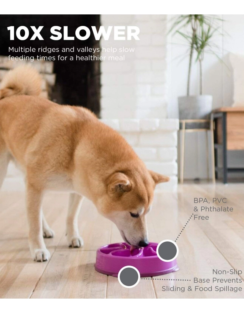 Fun Feeder Slo Bowl é um excelente aliado ao combate à obesidade canina e ao inchaço. Promove diversão enquanto o cão se alimenta e melhora a digestão. Possui uma base anti-deslizamento. Feito com materiais seguros com grau alimentar. Não contém BPA ou PVC. Livre de chumbo e ftalato. O tamanho médio suporta 2 xícaras de alimento e o tamanho grande, 4 xícaras de alimento seco ou úmido (Alimentação natural, por exemplo). Modo de usar: Coloque o alimento no prato e observe seu cão comer até 10 vezes mais lentamente que em um pote comum. Precauções: Este comedouro não é um brinquedo de roer. Observe e supervisione o uso para evitar que seu cão o destrua. Caso isso aconteça, descontinue o uso e substitua-o. Não coloque no micro-ondas. Seu uso é indicado para animais apenas. Não é um brinquedo para crianças. Pode ser lavado na máquina de lavar louças. Use a temperatura mínima na máquina de lavar louças. Large – 26,5cm diâmetro X 4cm altura.