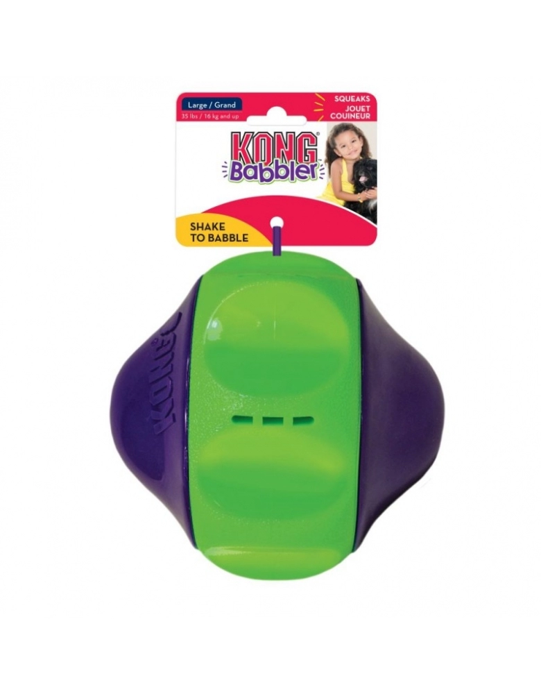 KONG Babbler é um brinquedo que emite sons únicos estranhos e divertidos para aumentar a curiosidade e estimular a brincadeira. Feito com material resistente para aumentar a durabilidade. Destinado à brincadeiras interativas, ele quica e rola de forma imprevisível, o que aumenta o desafio e diversão.