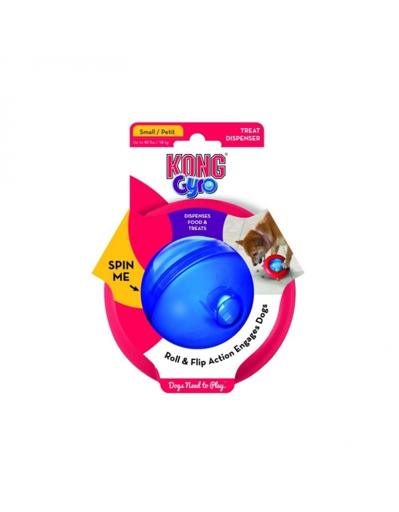 KONG GYRO® é um brinquedo feito com os materiais mais seguros e resistentes do mercado. Rolando e virando de forma irresistível, mantém os cães interessados e intrigados. A esfera central gira quando tocada pelo cão, liberando petiscos ou ração. O anel exterior é estático. Os cães satisfazem seus instintos de trabalhar para comer, se divertem e se alimentam mais lentamente, o que melhora significativamente a digestão e evita problemas de saúde. Desenvolvido para cães de mordida moderada ou leve. Para cães com mordida destrutiva, opte por brinquedos KONG de borracha. Nunca deixe o cão sozinho com o brinquedo, nem por alguns minutos. Acabado o alimento ou petiscos, higienize e guarde para a próxima.