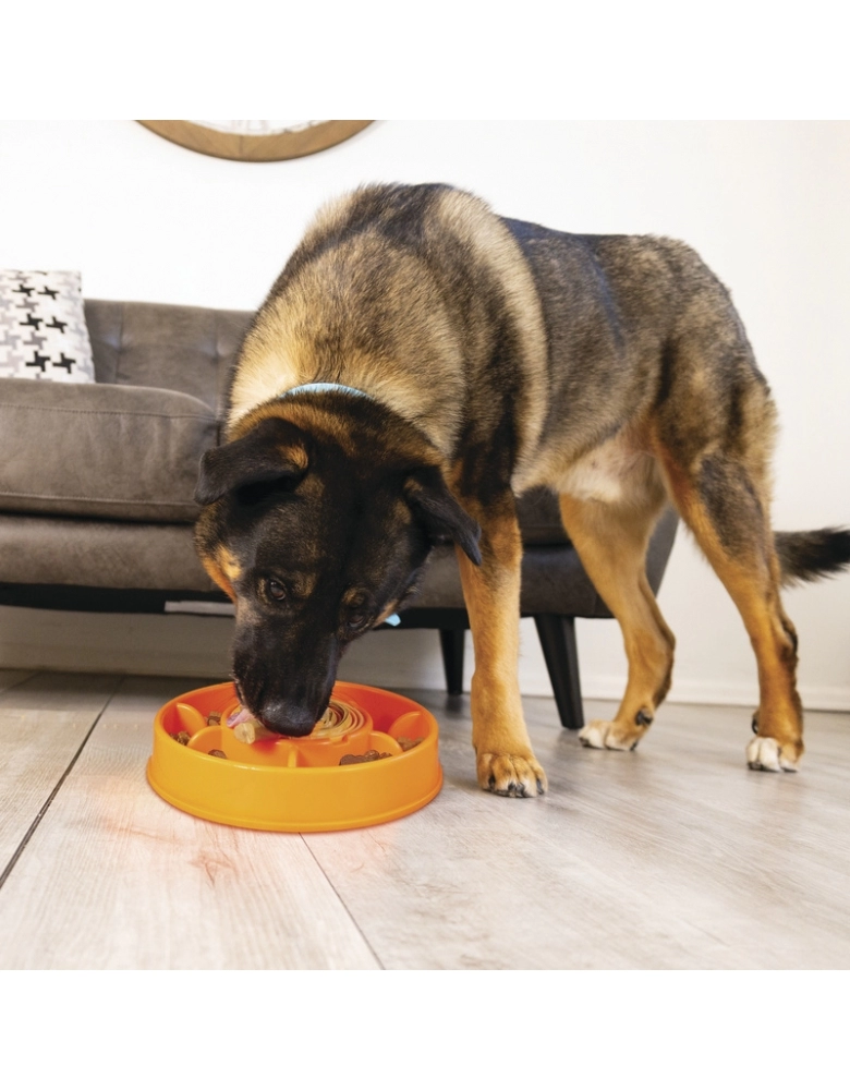Modo de usar: Espalhe alimento pastoso na parte de borracha, coloque o alimento seco do seu cão na parte plástica. A parte emborrachada possui 2 lados para desafios diferentes. A parte plástica impedirá que seu cão coma rápido demais, obrigando-o a dar pequenas abocanhadas.