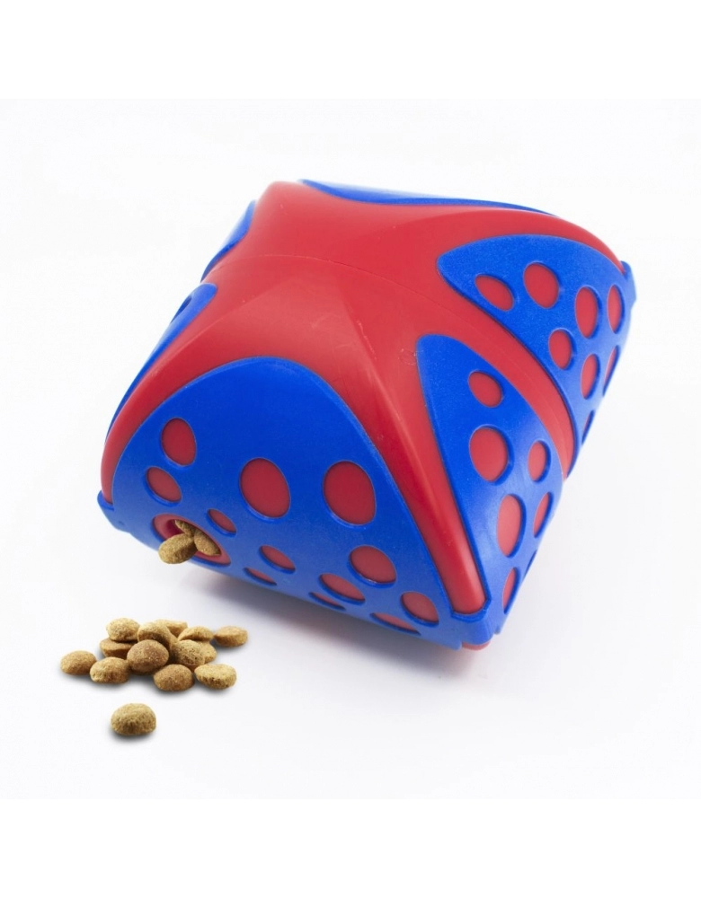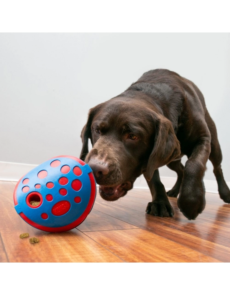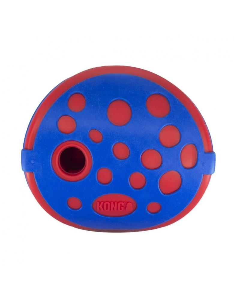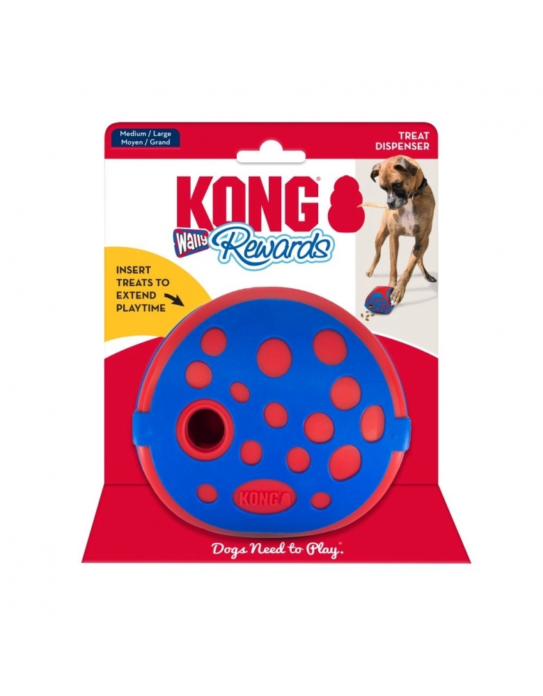 KONG Rewards Wally é um brinquedo com movimentos imprevisíveis para dispensar alimento ou petiscos lentamente para seu cão, destinado a estimulá-lo mental e fisicamente. Movimenta-se o tempo todo, o que estimula o engajamento. Uma excelente alternativa aos comedouros. Modo de usar: 1 – Gire para remover a parte de cima. 2 - Coloque alimento ou petiscos. Para petiscos, adicione até uma mão cheia. Para alimento, adicione até uma xícara cheia por vez. 3 – Gire para fechas firmemente. Ensine seu cão a tocar e move-lo para dispensar o alimento. Lave somente à mão com água e sabão neutro. Importante: Destinado a cães de mordida moderada. Para cães de mordidas mais fortes, procure um brinquedo KONG de borracha. Use somente com sua supervisão. Descontinue o use caso encontre-se danificado. Nunca deve ser deixado com o cão, especialmente se ele começar a roê-lo. Se ocorrer, remova pois o mesmo poderá ser danificado. Feito para mordidas, patadas, lambidas, mas não deve ser roído, ou será destruído. Acabado o alimento, remova do contato do cão até estar seguro que ele não tentará destruí-lo.