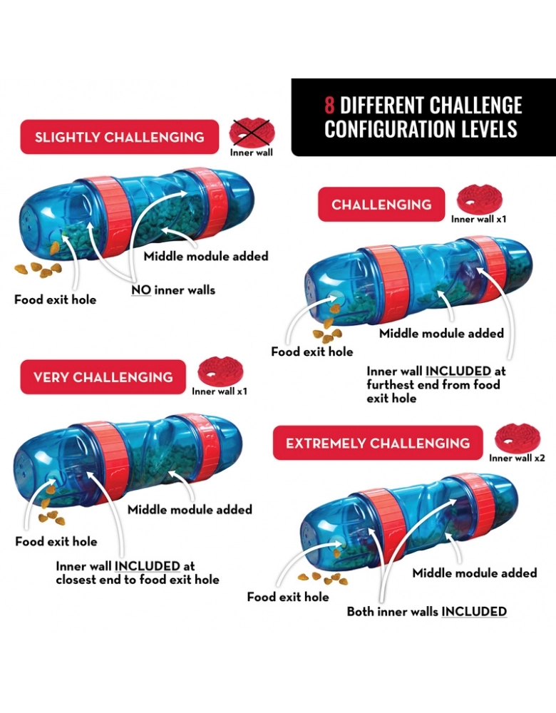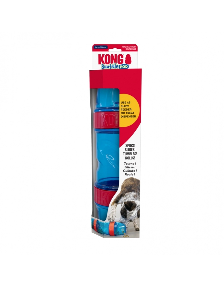 KONG Scuttle Pod oferece 8 maneiras de satisfazer instintos naturais de forragear dos cães através de estímulos mentais e físicos. As partes encaixam-se entre si de maneiras distintas para criar desafios e liberando alimento de maneiras distintas à medida que eles brincam. Você também pode passar algo pastoso nas partes externas das paredes para aumentar ainda mais o desafio e a diversão. Ajuste a configuração para aumentar ou diminuir a dificuldade. Tem capacidade para 3 xícaras de alimento seco. Veja as figuras na lateral da embalagem para entender cada uma das 8 configurações e nível de dificuldade diferentes.