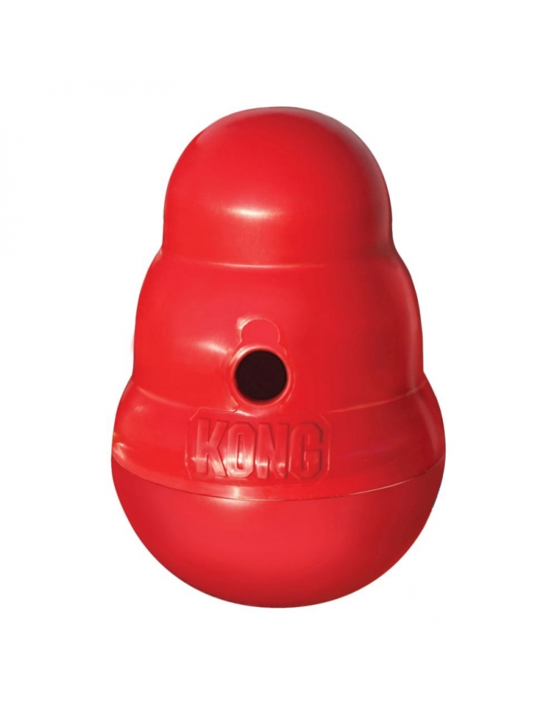 O Wobbler em forma de KONG é um brinquedo cheio de ação e distribuição de comida. Ele fica em pé até ser empurrado pela pata ou pelo nariz de um cão e, então, periodicamente distribui recompensas saborosas enquanto balança, gira e rola. O movimento imprevisível mantém o brinquedo desafiador, mesmo para usuários experientes de Wobbler. O Wobbler também pode ser usado como uma alternativa para uma tigela de cachorro para ajudar a diminuir e estender o horário das refeições enquanto fornece exercícios para seu cão. Desaparafusa para fácil enchimento e limpeza.