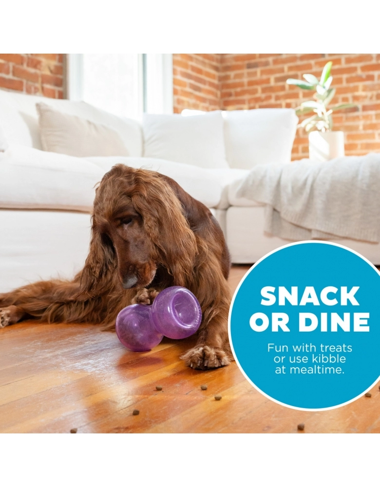 O brinquedo interativo para cães Double Snoop é a melhor diversão para distribuir petiscos. Esse brinquedo dois-em-um oferece estímulo mental para os cães enquanto eles trabalham para liberar as guloseimas. Encha facilmente esse brinquedo recheável com guloseimas para manter seu cão entretido enquanto ele pula e rola para liberar as saborosas recompensas. O Double Snoop tem aroma de menta para ajudar a refrescar o hálito e é feito com material durável projetado para ser suave com os dentes dos cães. Esse brinquedo para cães é divertido e livre de BPA, chumbo e ftalatos para garantir uma experiência de brincadeira sem preocupações. Modo de usar: Preencha o brinquedo com petiscos ou ração. Ofereça a ele e observe ele tentando descobrir como remover.