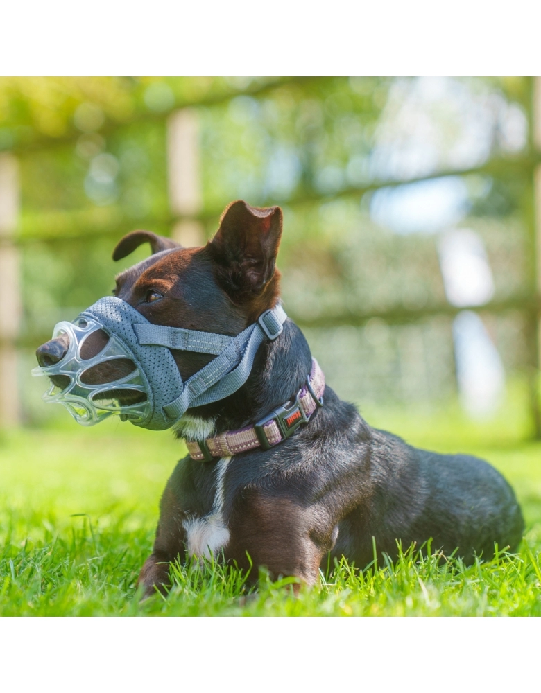 Importante: Nunca deixe seu cão sozinho usando uma focinheira. O uso da focinheira deve ser uma experiência positiva para o cão e nunca de estresse. Se tem dúvidas de como adaptar e usar uma focinheira, consulte um adestrador experiente.