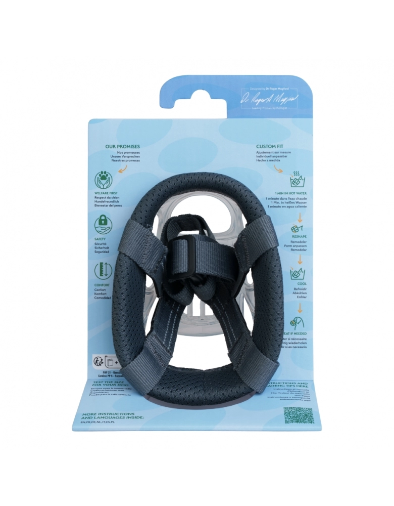 Apresentamos a INVISA, a próxima geração de focinheiras, projetada para permitir que os donos possam passear com confiança com seus cães em público, proporcionando tranquilidade em termos de segurança e conforto, com um design transparente que reduz o estigma associado às focinheiras tradicionais. Fabricada em borracha termoplástica (TPR) durável, a INVISA redefine a focinheira com recursos avançados que priorizam a funcionalidade e o bem-estar canino.