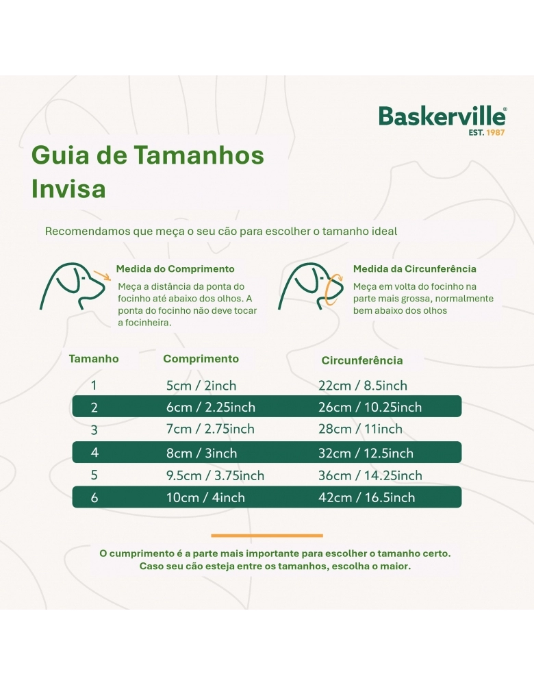 Importante: Nunca deixe seu cão sozinho usando uma focinheira. O uso da focinheira deve ser uma experiência positiva para o cão e nunca de estresse. Se tem dúvidas de como adaptar e usar uma focinheira, consulte um adestrador experiente.