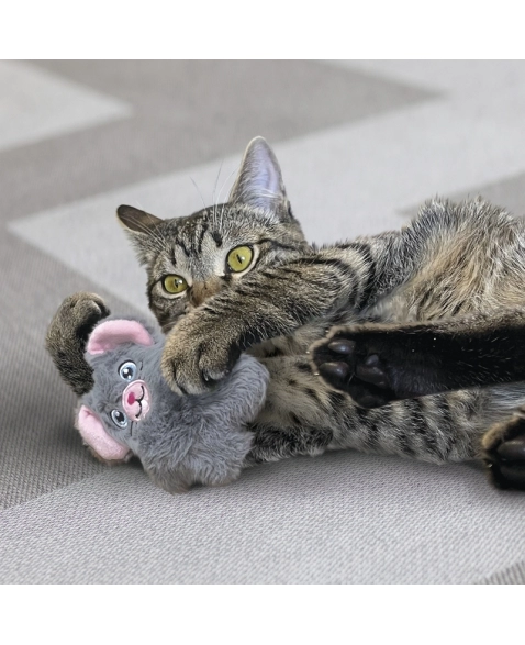 KONG Cat Snuzzles Mouse é um brinquedo simpático, grande e preparado para intermináveis e ferozes lutas com seu gato. Esse brinquedo com tamanho perfeito para lutas de corpo e mordidas e batidas divertidas. Sua textura única e estalidos internos estimulam os instintos naturais de luta dos gatos. Contém o catnip exclusivo da KONG.