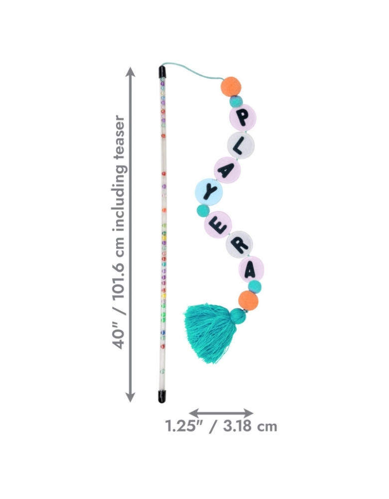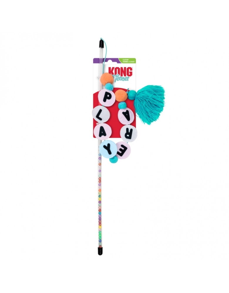 KONG Teaser Friendship é o brinquedo perfeito para interagir com seu gato. As letras ficam balançando enquanto você movimenta a varinha, e isso estimula o seu gato a caçar e bater as patinhas nelas e na ponta que se parece com um rabo de alguma caça interessante e estimulante. O som de chocalho produzido pela varinha estimula ainda mais o seu gatinho a caçar e perseguir o brinquedo. Possui catnip exclusivo da KONG