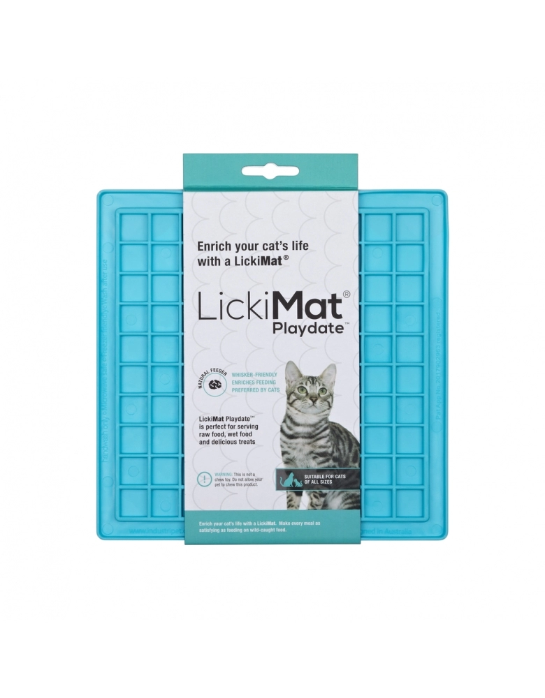 LickiMat Playdate é um alimentador desenvolvido por veterinários que tem o objetivo de divertir, reduzir o estresse, ansiedade e tédio de seu gato. Reduz a velocidade de ingestão de alguns segundos para alguns minutos. Feito 100% de borracha TPR com