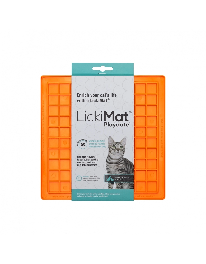 LickiMat Playdate é um alimentador desenvolvido por veterinários que tem o objetivo de divertir, reduzir o estresse, ansiedade e tédio de seu gato. Reduz a velocidade de ingestão de alguns segundos para alguns minutos. Feito 100% de borracha TPR com