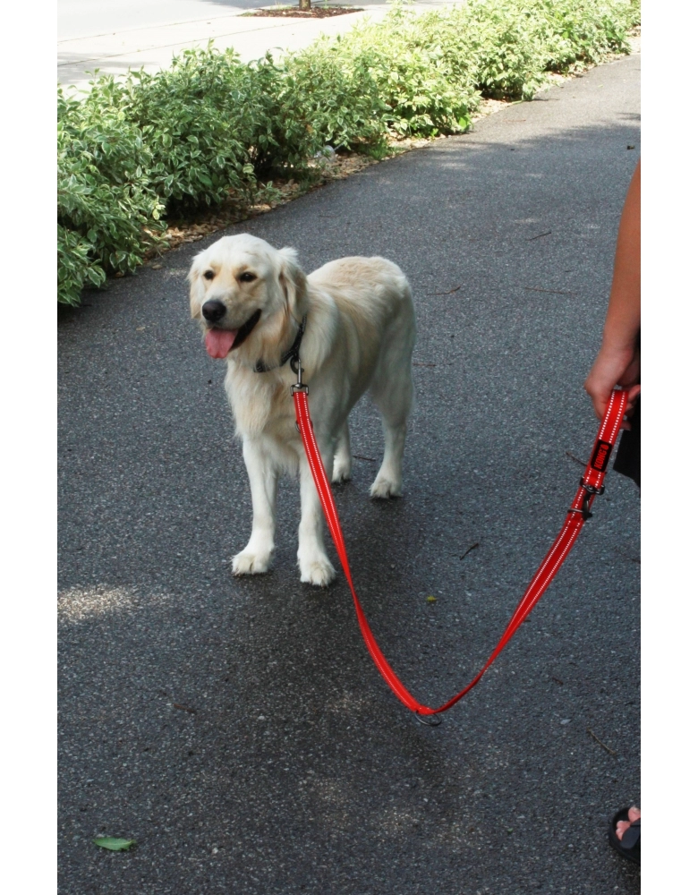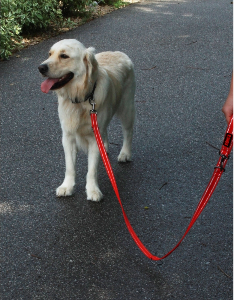 KONG Adjustable Leash é uma guia feita com material almofadado e refletivo para segurança em passeios noturnos. Fabricado com nylon reforçado e Neoprene para resistência, durabilidade e conforto. Modo de usar: Abra o mosquetão e conecte à coleira ou peitoral de seu cão. Evite expor à água salgada para evitar que as partes metálicas enferrujem. Esta guia pode ser ajustada em até 5 posições para maior versatilidade e segurança durante seu passeio.