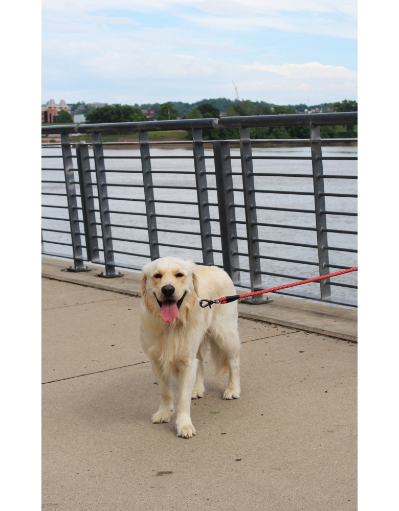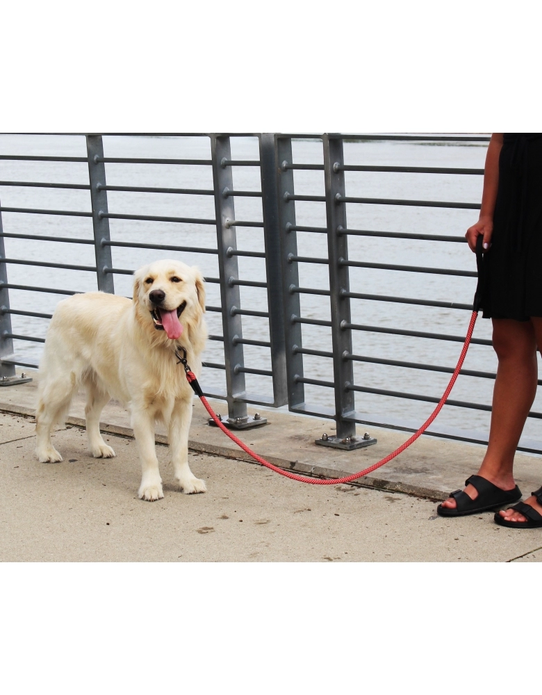 KONG Rope Leash é uma guia em forma de corda, feita com material almofadado e refletivo para segurança em passeios noturnos. Fabricado com nylon reforçado e